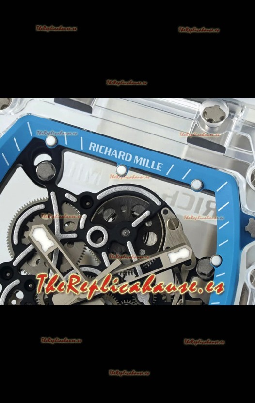 Richard Mille RM055 Caja con Zafiros Transparentes y Tourbillon Genuino Reloj Super Clone