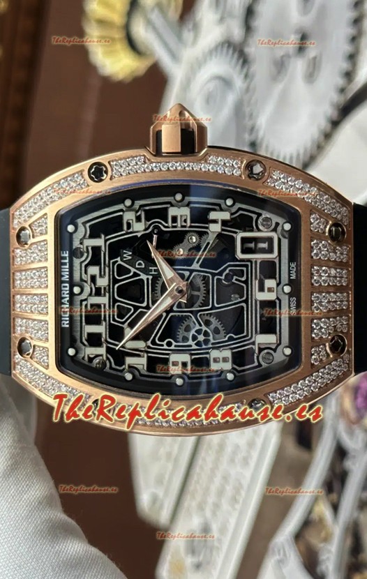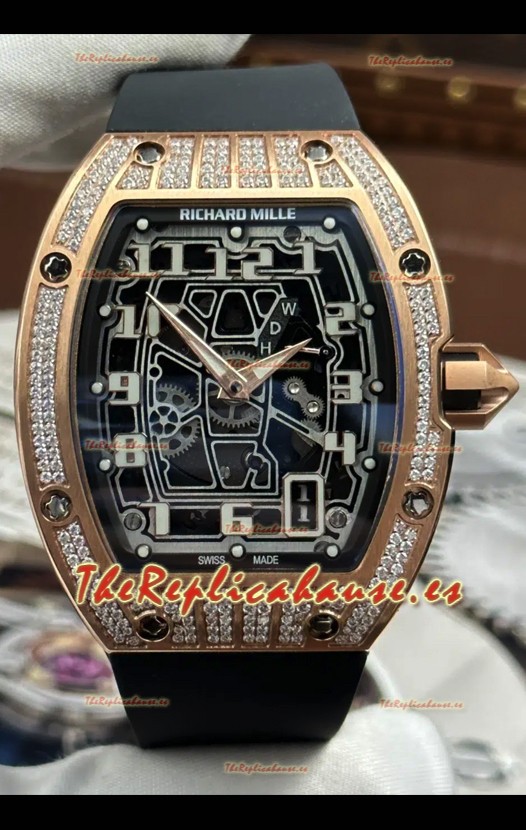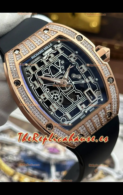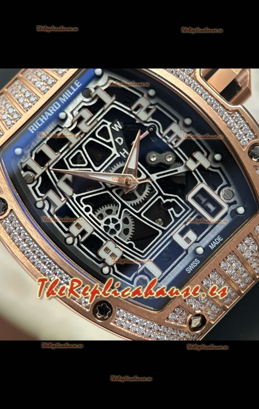 Richard Mille RM67-01 Oro Rosado Caja Caja Moissanitas Reloj Suizo Réplica 1:1