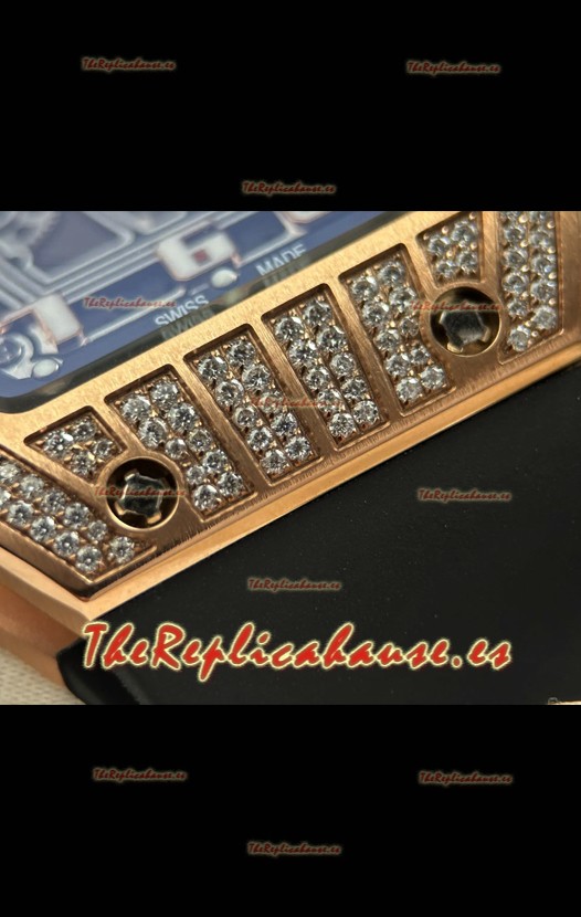 Caja Acero 904L chapada en Oro Rosado 18K. Moissanitas de Alta Calidad incrustadas en la Caja (Pasa las pruebas de Diamantes)