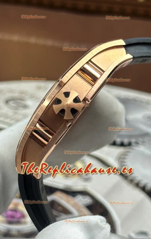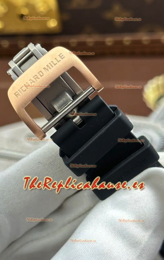 Correa de Goma Negra con Cierre Plegable con revestimiento en Oro Rosado completada con Marcas y Grabados Richard Mille