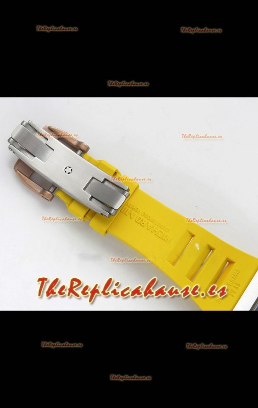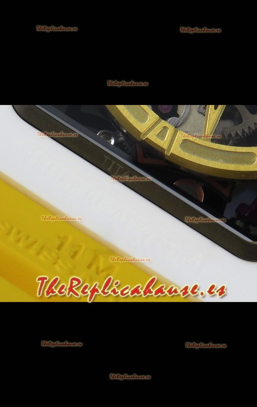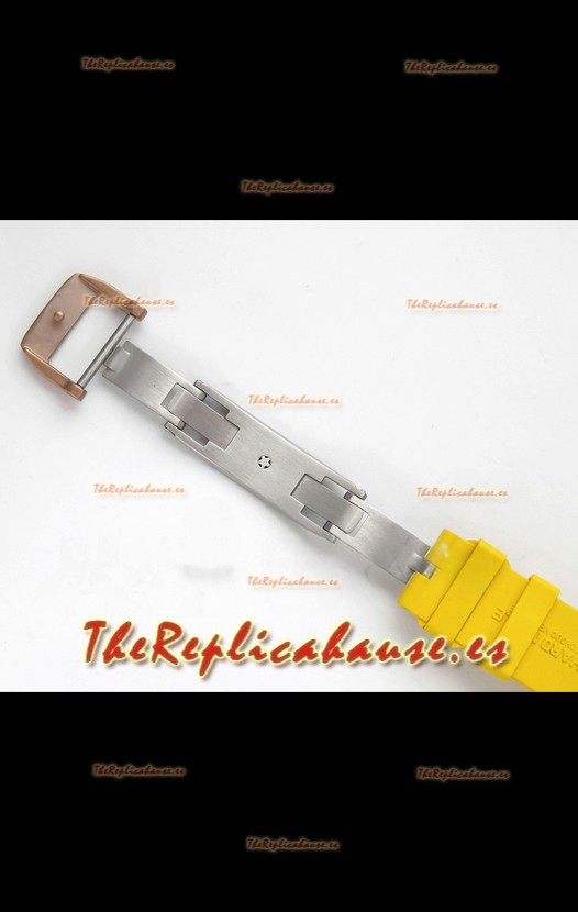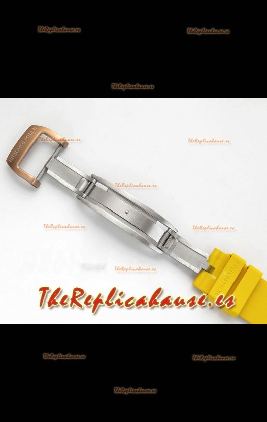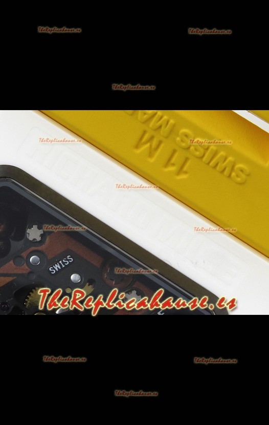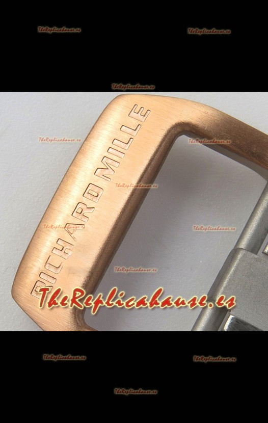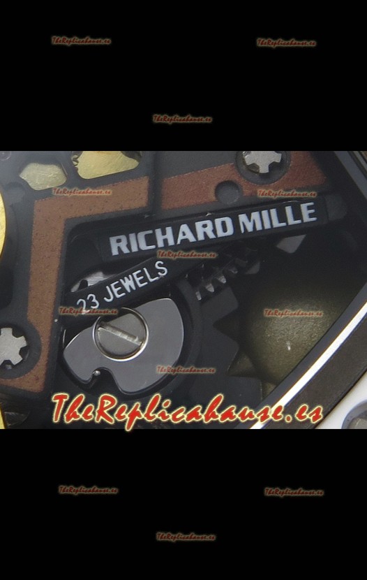 Cristales Frontales de Zafiro antirreflectantes a prueba de Rasguños. Trasera de la Caja Sólida completada con Marcas/Grabados Richard Mille