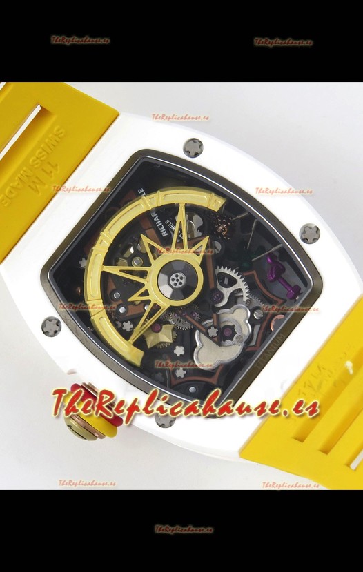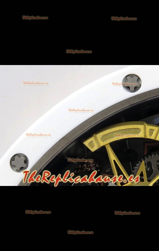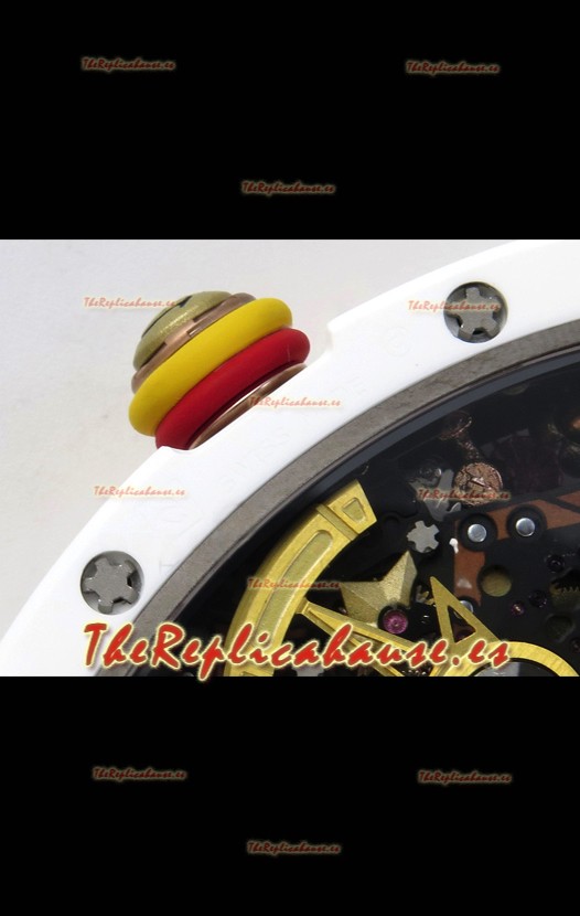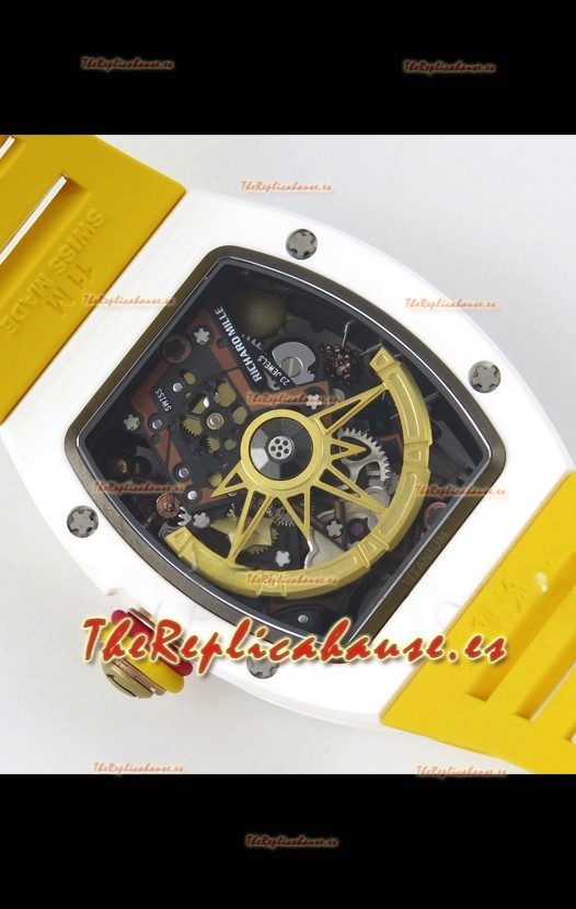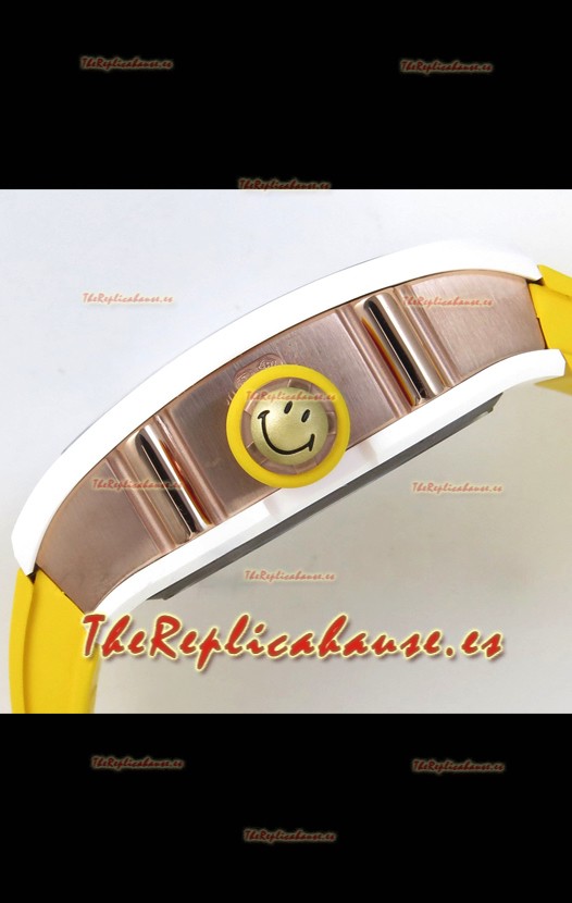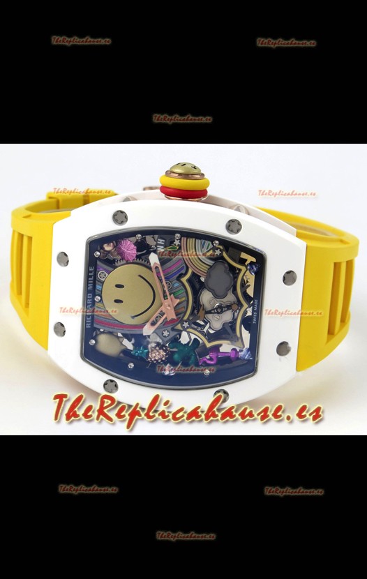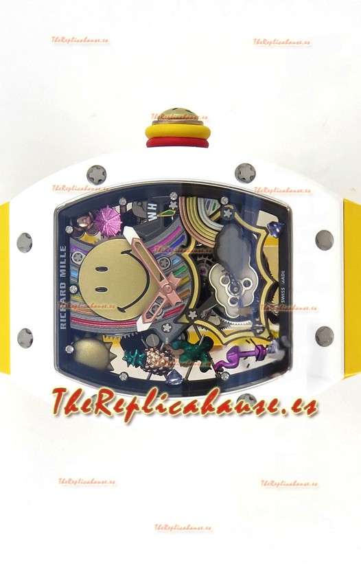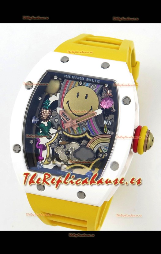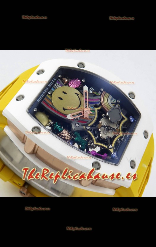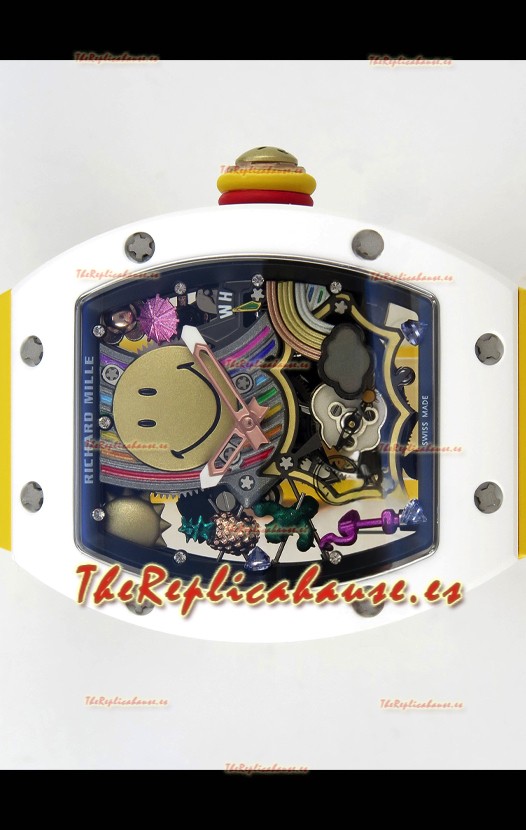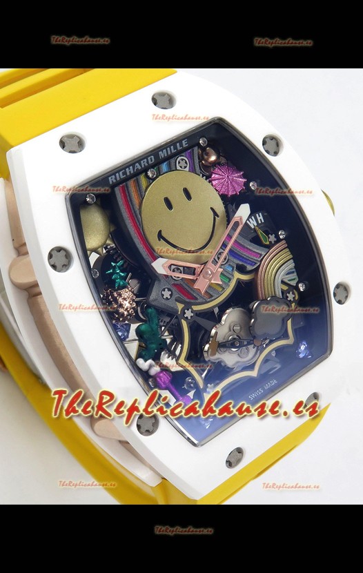 Richard Mille Super Clone RM088 Smiley Tourbillon Cerámica Blanca Reloj Correa de Goma