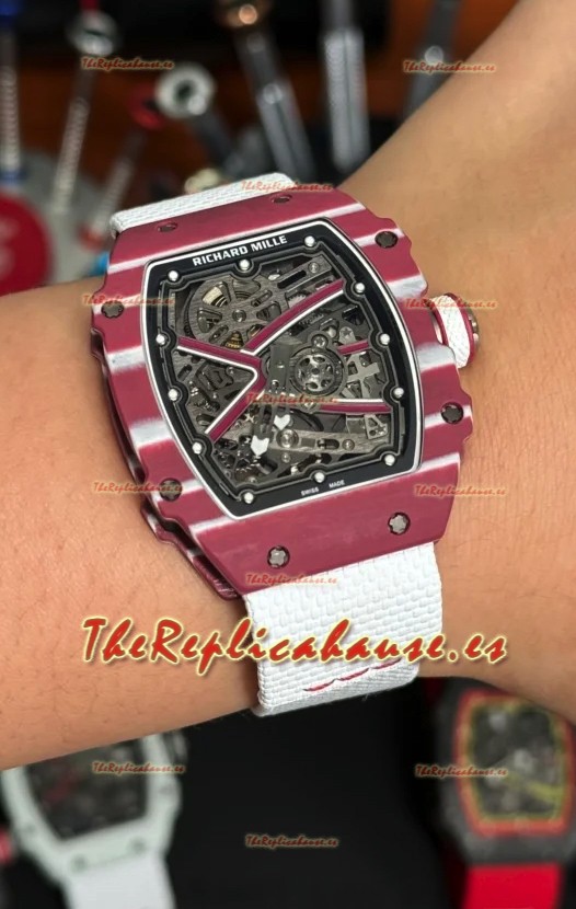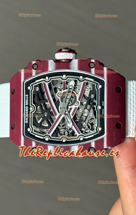 Richard Mille Super Clone RM67-02 Mutaz Barshim Carbono Rojo TPT 27 Gramos Reloj Correa Blanca