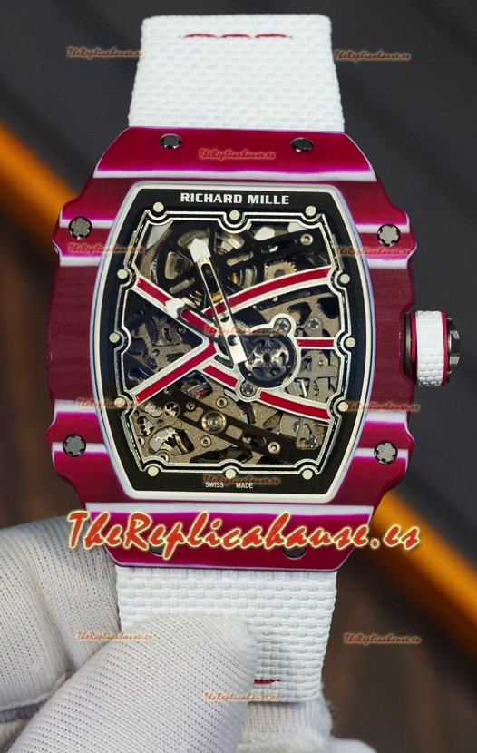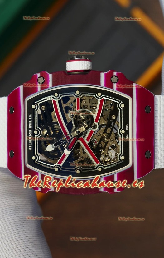 Richard Mille Super Clone RM67-02 Mutaz Barshim Carbono Rojo TPT 27 Gramos Reloj Correa Blanca