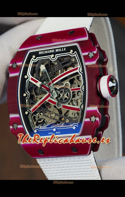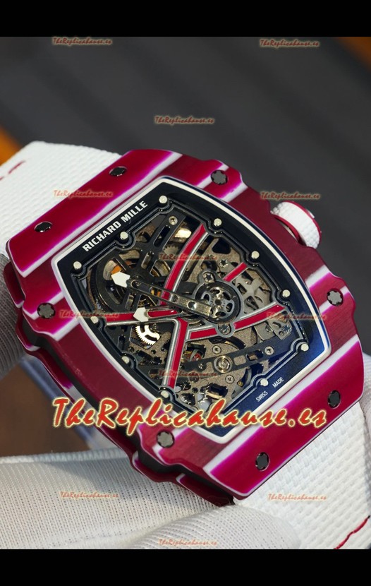Caja de Fibra de Carbono Rojo de una Pieza completada con Marcas y Grabados Richard Mille