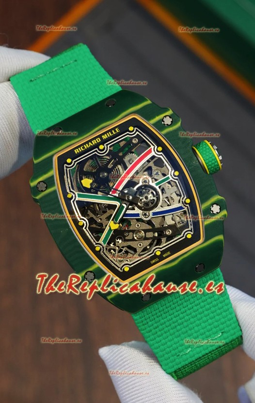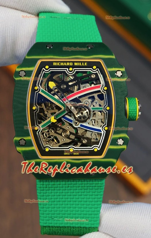 Richard Mille Super Clone RM67-02 Wayde Van Niekerk Carbono Verde TPT 37 Gramos Reloj Correa Verde
