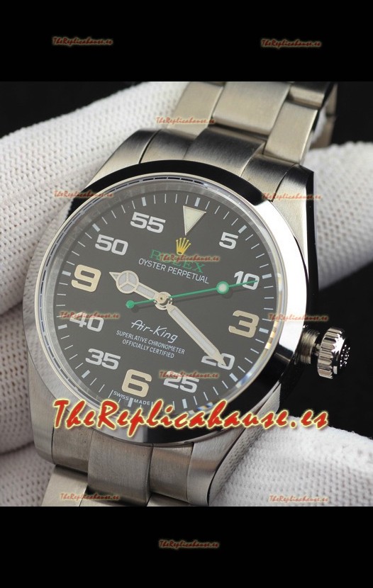 Rolex Air King Movimiento Japonés Reloj Réplica en Acero Inoxidable Dial Acero Negro 40MM