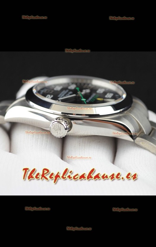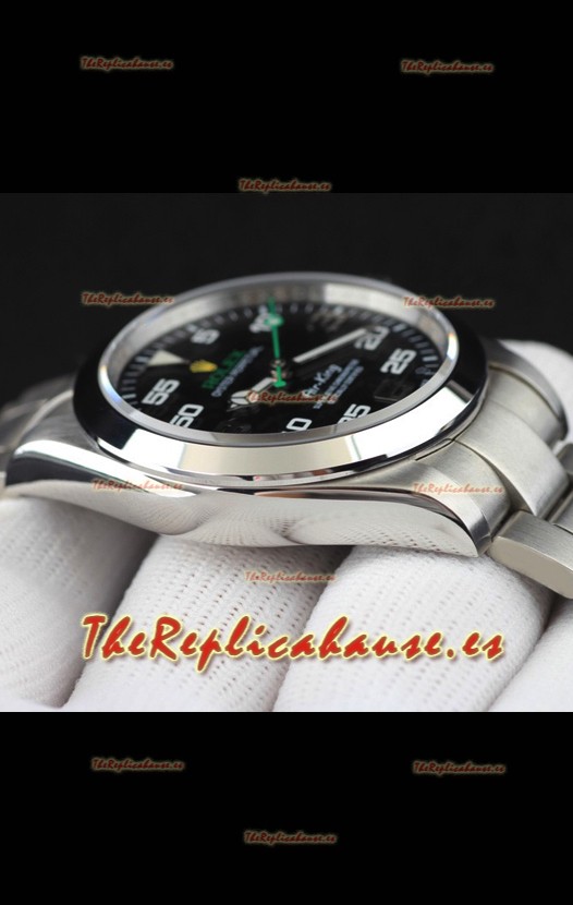 Rolex Air King Movimiento Japonés Reloj Réplica en Acero Inoxidable Dial Acero Negro