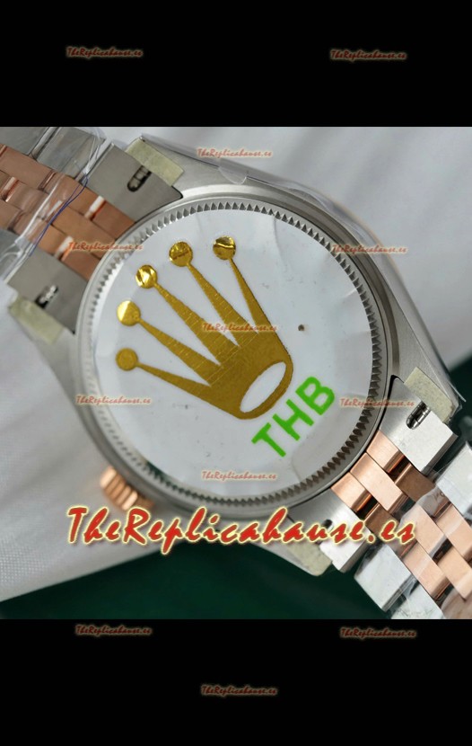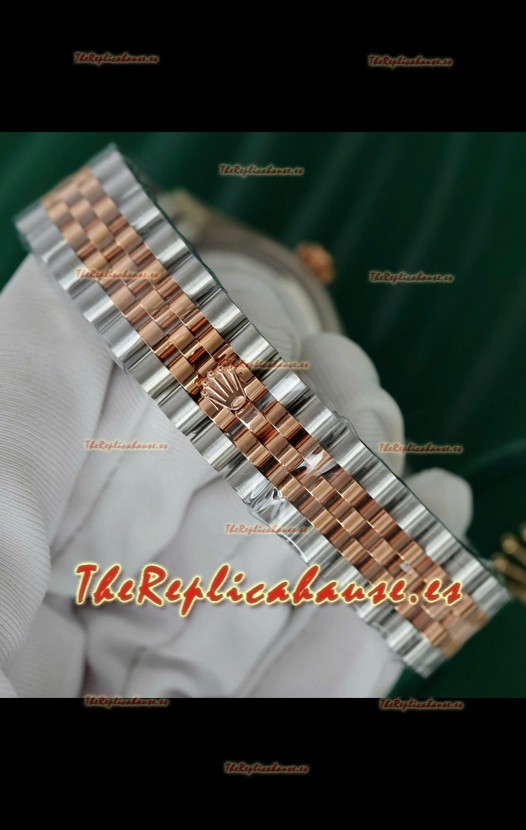 Correa de Acero Inoxidable 904L de Dos Tonos chapada en Oro Rosado 18K con Nuevo Cierre Hebilla Desplegable estilo Rolesor, eslabones de los extremos coinciden al ras con la Caja. - Una versión Muy Mejorada de la Correa Datejust