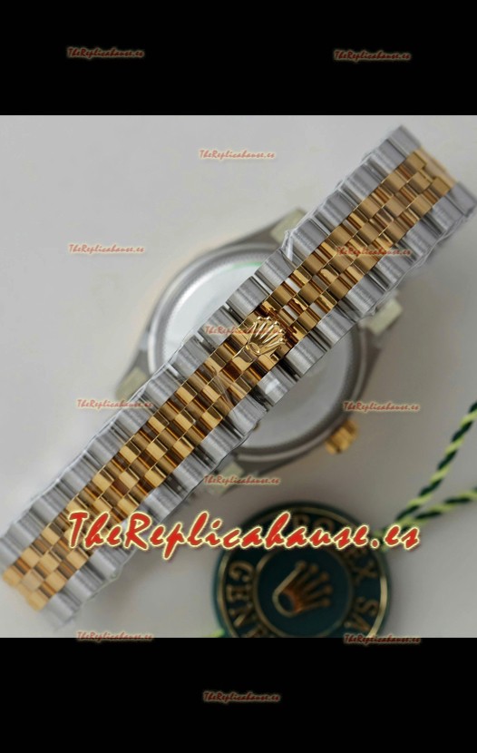 Correa de Acero Inoxidable 904L chapada en Oro Amarillo 18K de Dos Tonos con Nuevo Cierre Hebilla Desplegable estilo Rolesor, eslabones de los extremos coinciden al ras con la Caja. - Una versión Muy Mejorada de la Correa Datejust