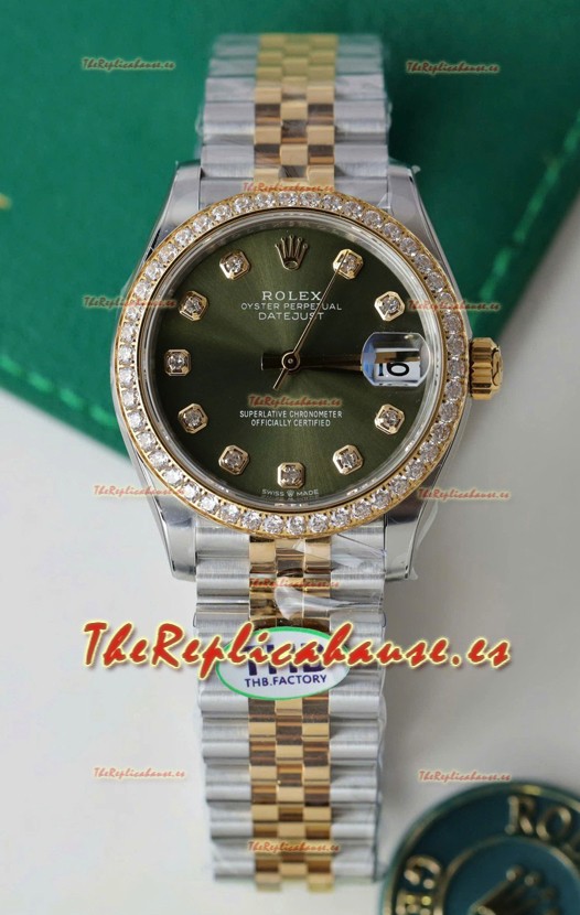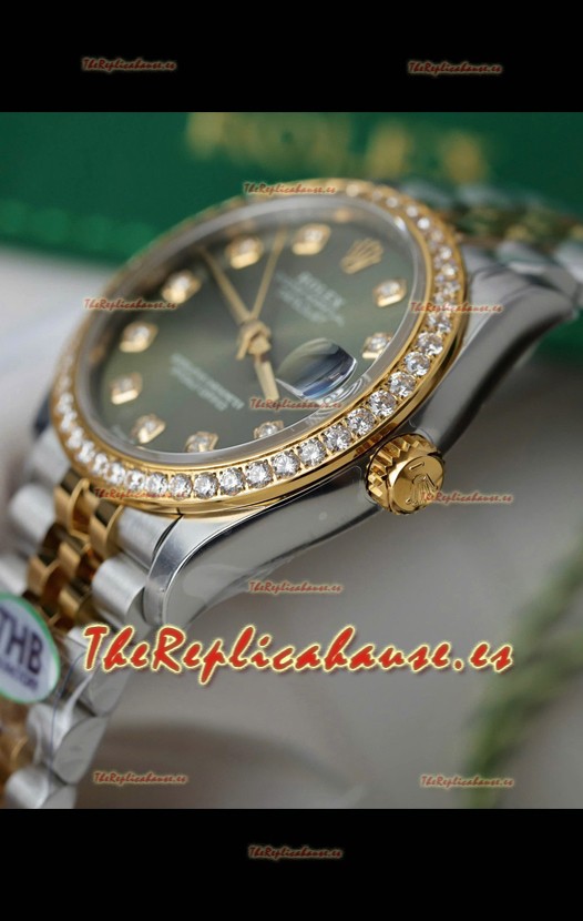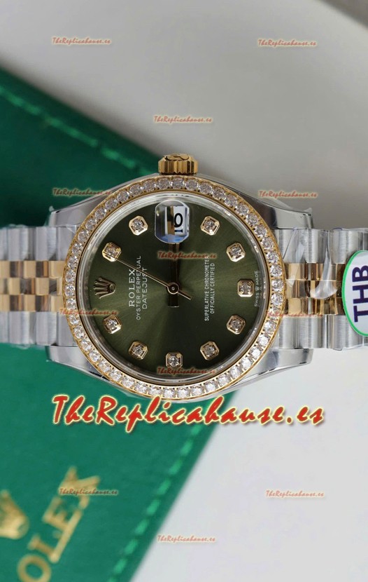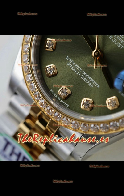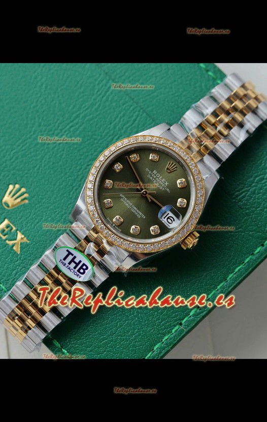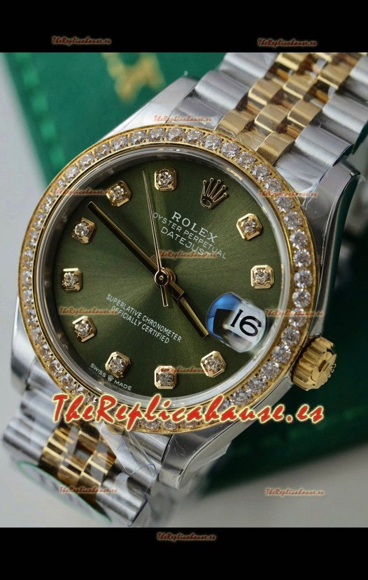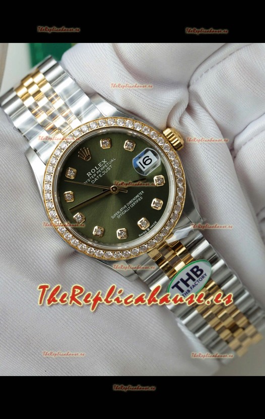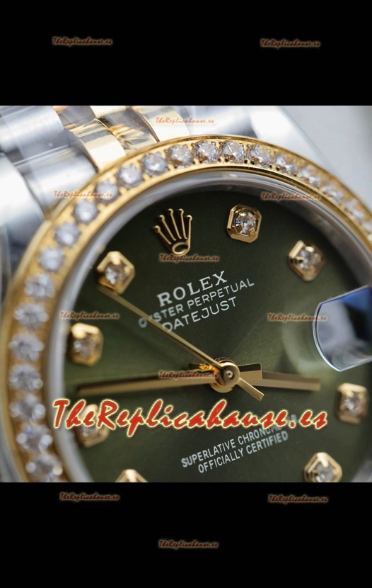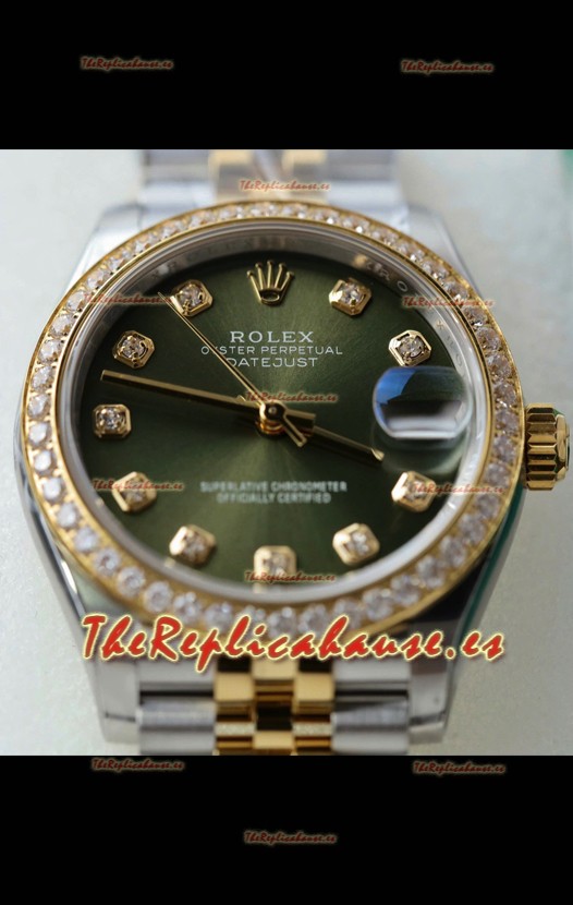 Rolex Datejust Calibre 3235, Movimiento Super Clone, Oro Rosado Dos Tonos 31MM - Dial verde