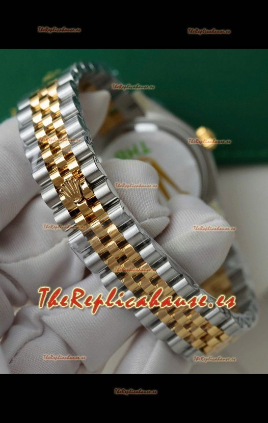 Correa de Acero Inoxidable 904L chapada en Oro Amarillo 18K de Dos Tonos con Nuevo Cierre Hebilla Desplegable estilo Rolesor, eslabones de los extremos coinciden al ras con la Caja. - Una versión Muy Mejorada de la Correa Datejust