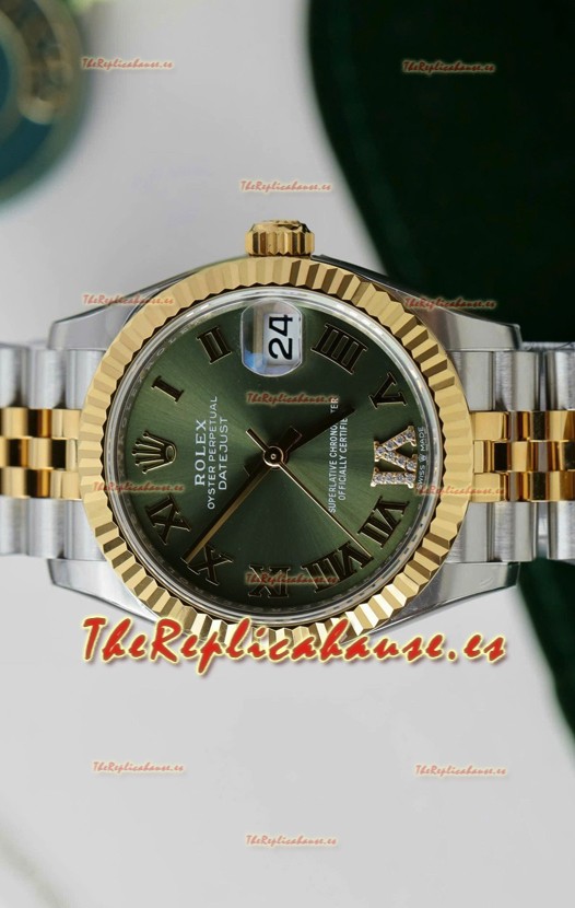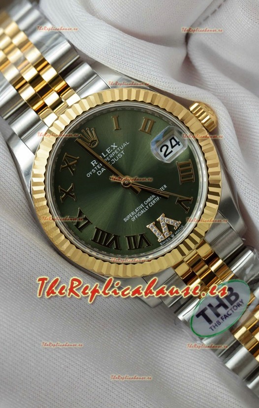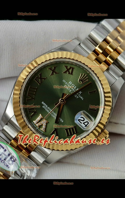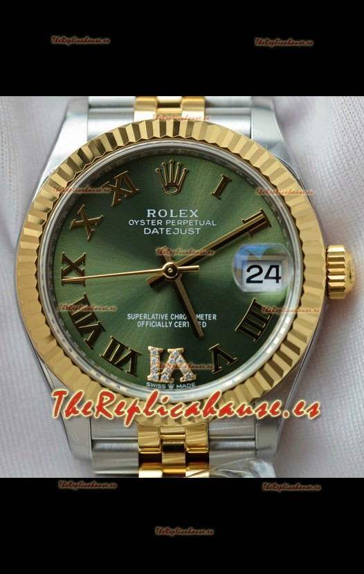 Rolex Datejust Calibre 3235, Movimiento Super Clone, Oro Rosado Dos Tonos 31MM - Dial verde