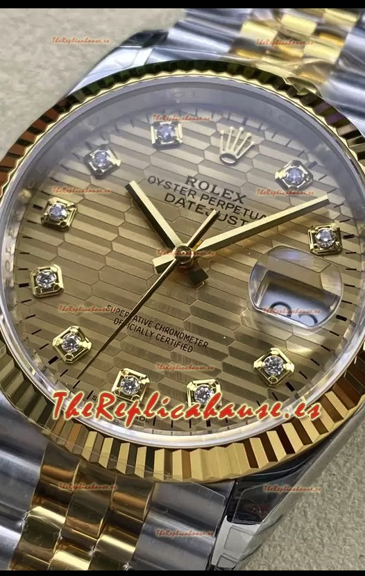 Rolex Datejust Movimiento Cal.3235 Réplica a Espejo 1:1 Acero 904L 36MM - Dial Dorado con Motivo Estriado