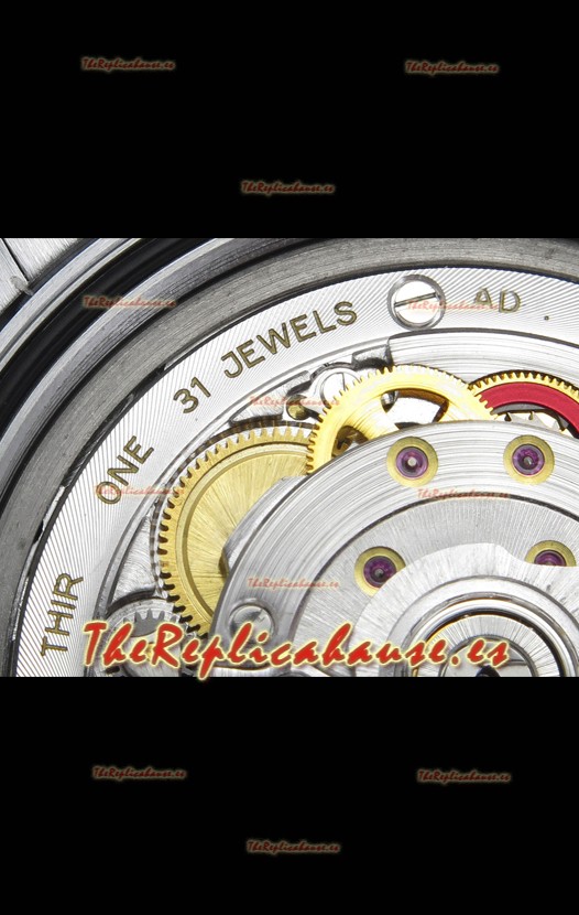 Movimiento Suizo Automático Cal.3255 con movimiento muy suave de las manecillas segunderas.