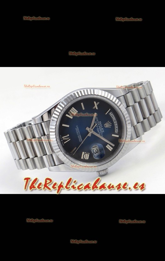 Rolex Day Date Super Clone Dial Azul Romanos 40MM 220 Gramos Reloj Réplica Suizo