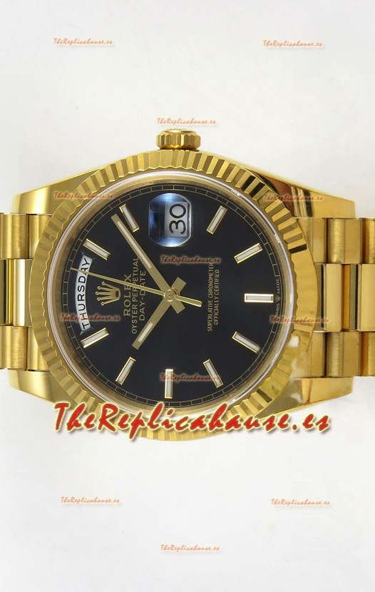 Rolex Day Date Super Clone Dial Negro 40MM 220 Gramos Reloj Réplica Suizo