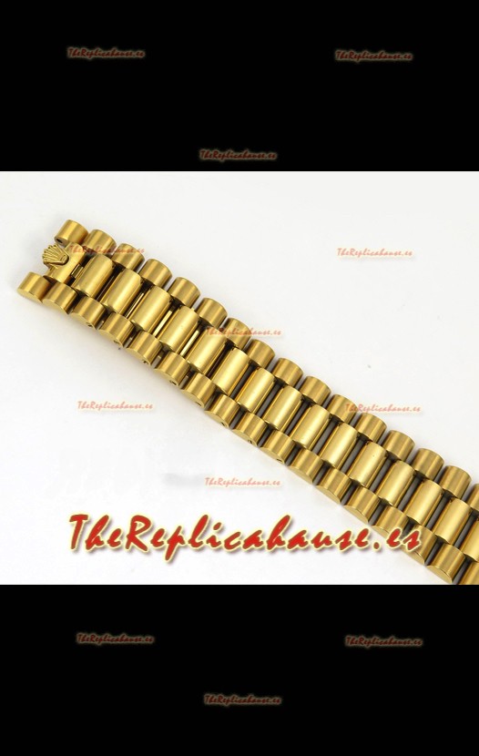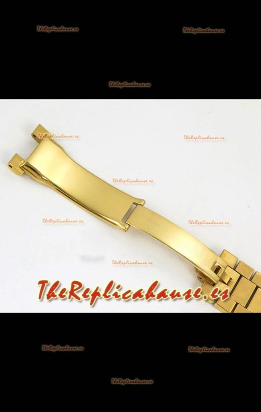 Correa de Acero Inoxidable 904L chapada en Oro Amarillo 18K con Nuevo Diseño de Correa President con Cierre Plegable completado con Marcas y Grabados Rolex