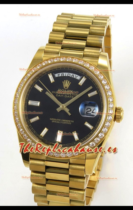 Rolex Day Date Super Clone Dial Negro 40MM 220 Gramos Reloj Réplica Suizo