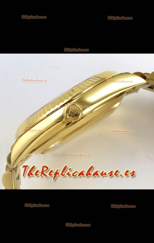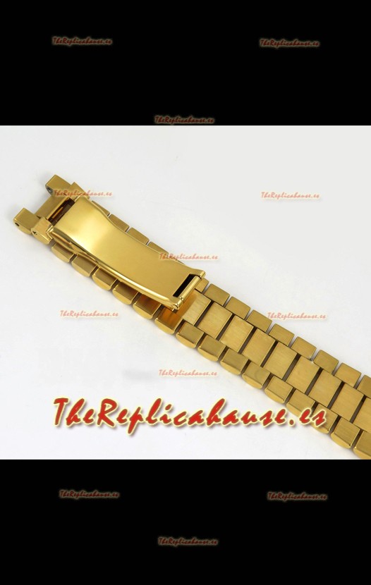 Correa de Acero Inoxidable 904L chapada en Oro Amarillo 18K con Nuevo Diseño de Correa President con Cierre Plegable completado con Marcas y Grabados Rolex