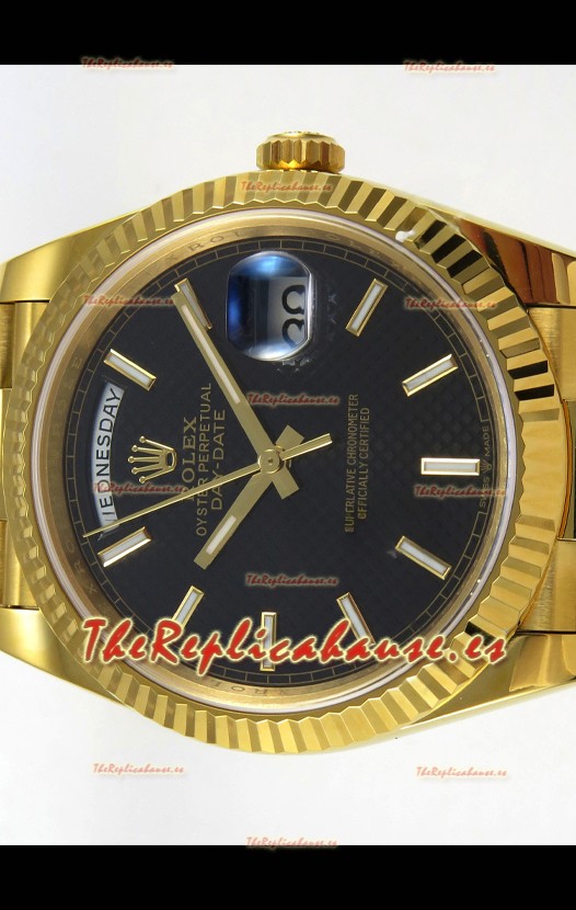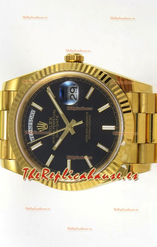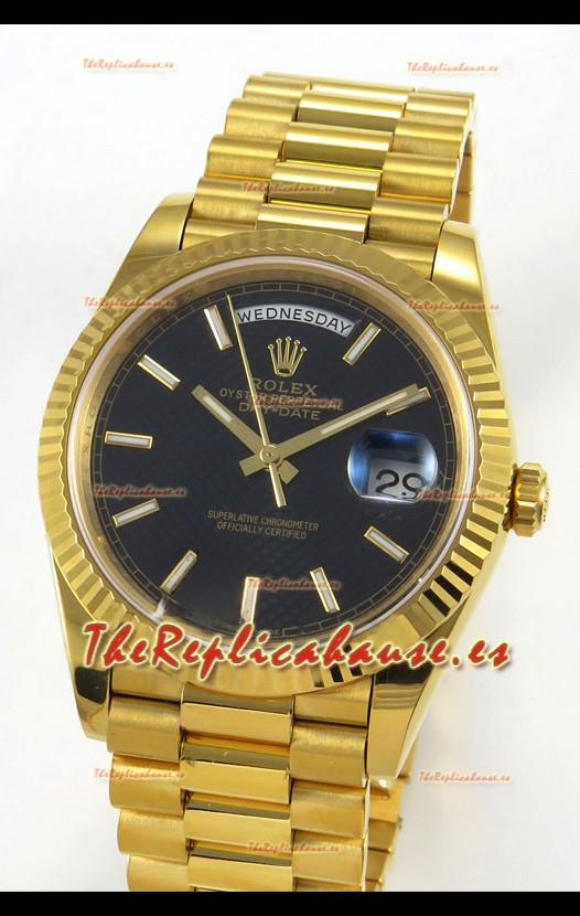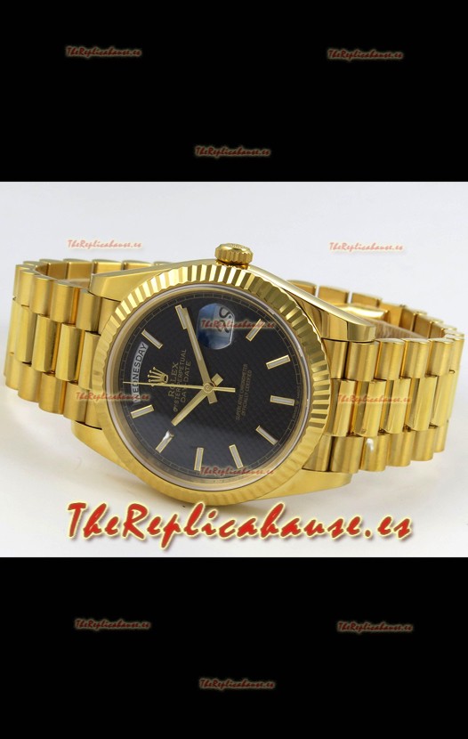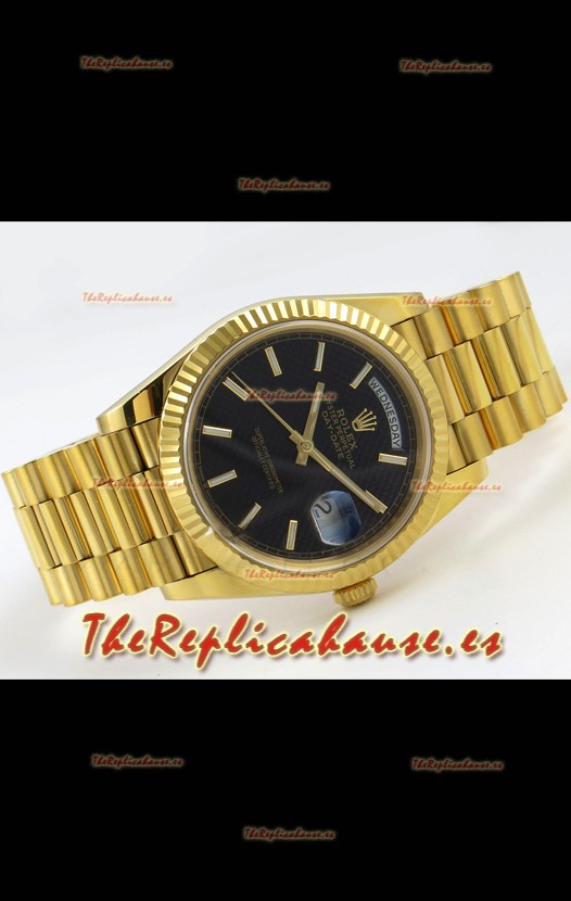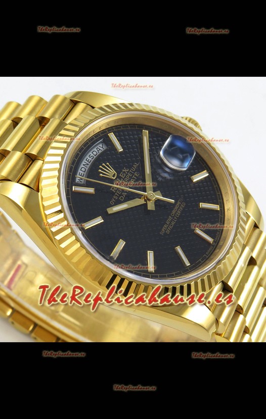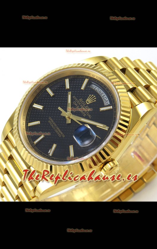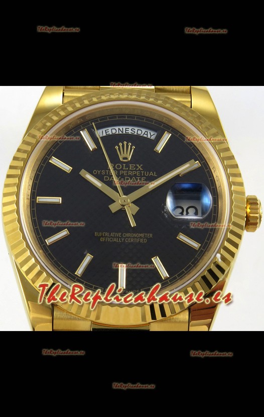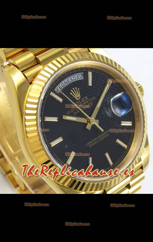 Rolex Day Date Super Clone Dial Negro Diseño Panal Abejas 40MM 220 Gramos Reloj Réplica Suizo