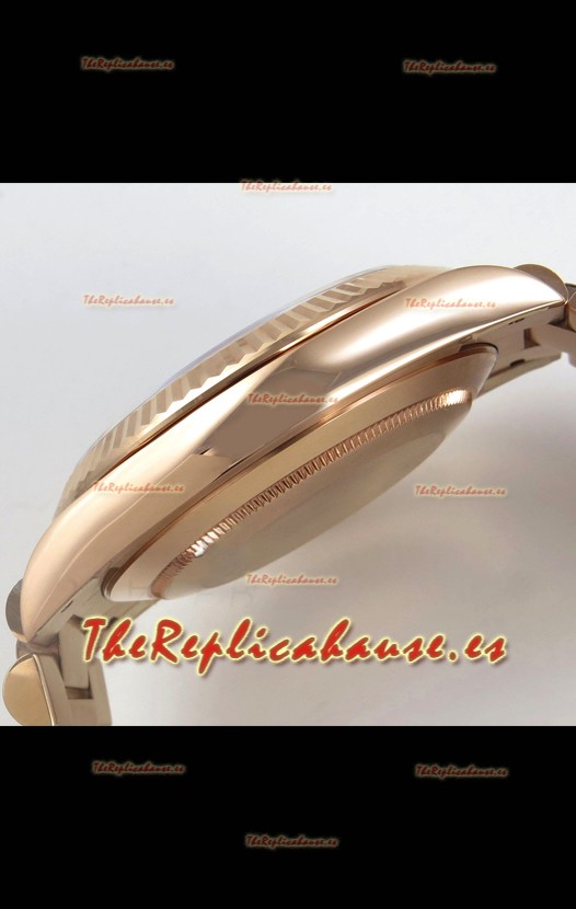 Caja Acero 904L chapada en Oro Rosado 18K completada con todas las Marcas y Grabados Rolex. como los Originales