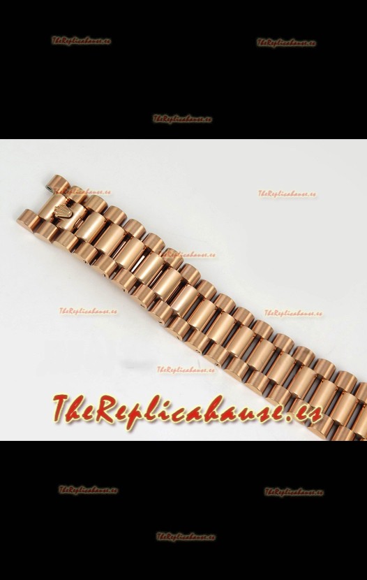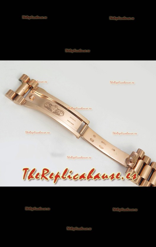 Correa Acero Inoxidable 904L chapada en Oro Rosado 18K con Nuevo Diseño de Correa President con Cierre Plegable completado con Marcas y Grabados Rolex