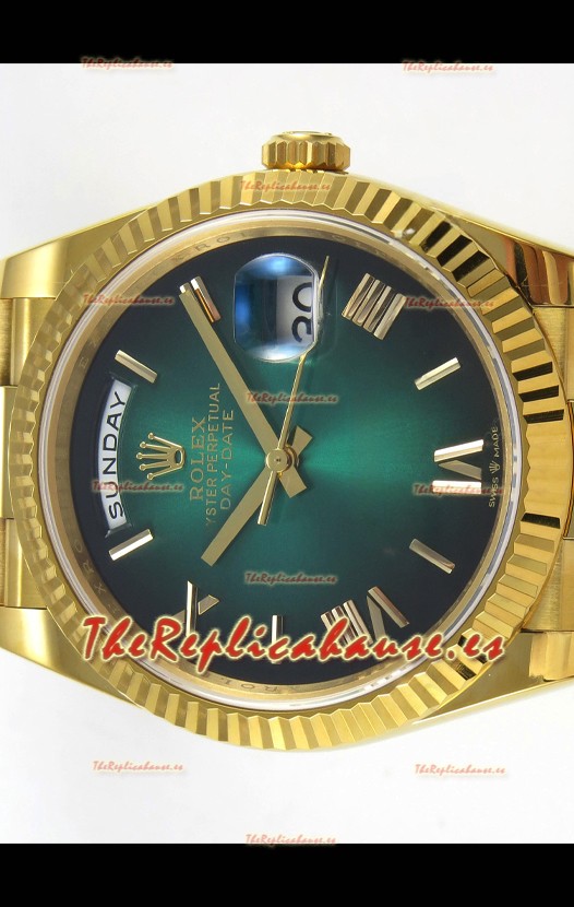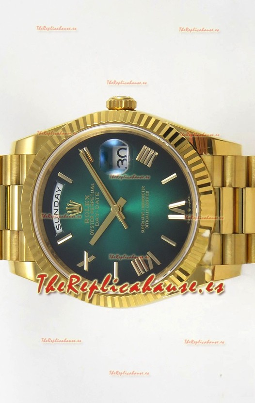 Rolex Day Date Super Clone Dial Verde Ombre 40MM 220 Gramos Reloj Réplica Suizo