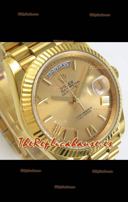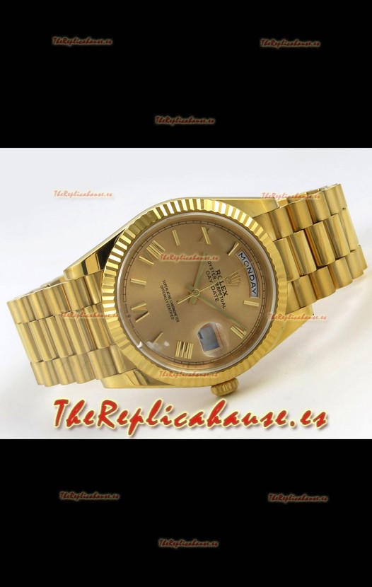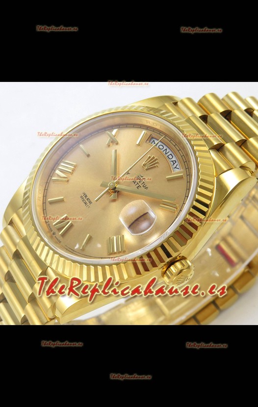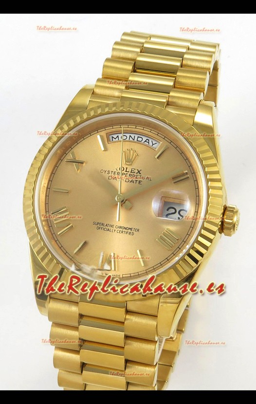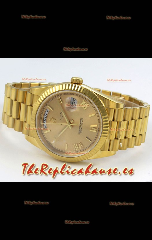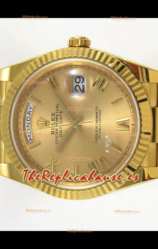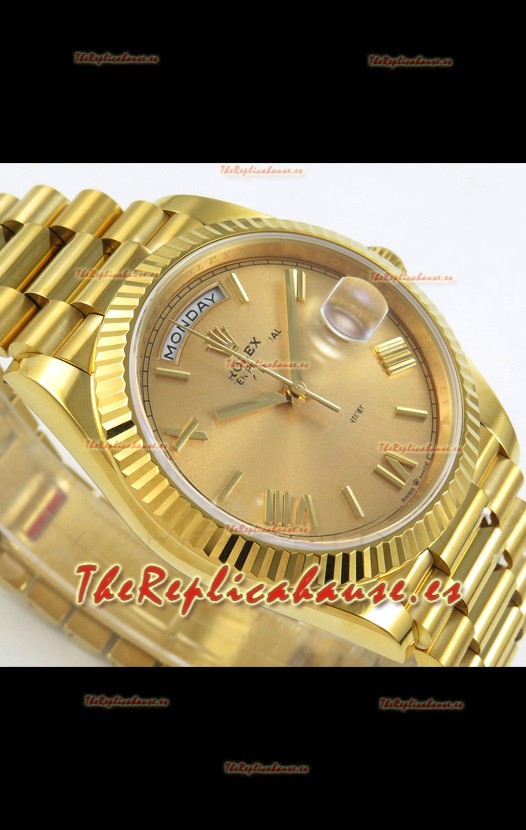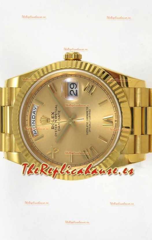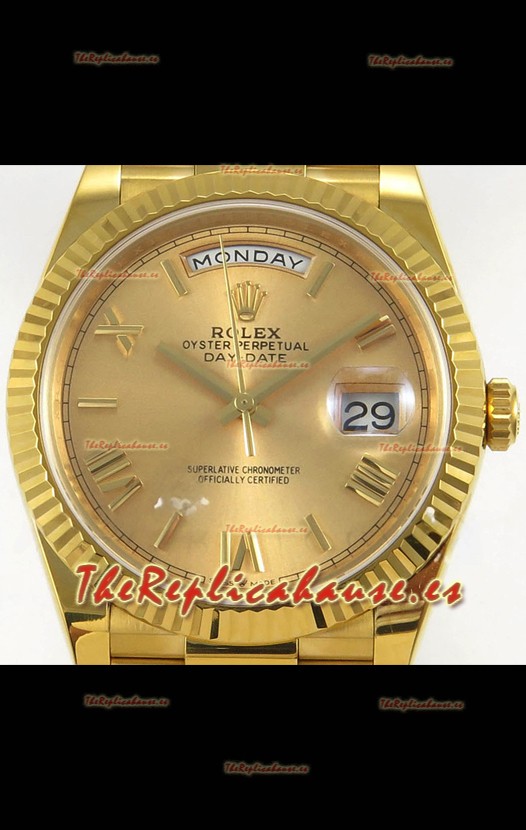 Rolex Day Date Super Clone Gold Roman Dial 40MM 220 Gramos Reloj Réplica Suizo