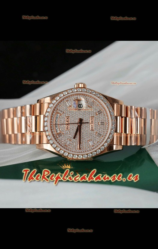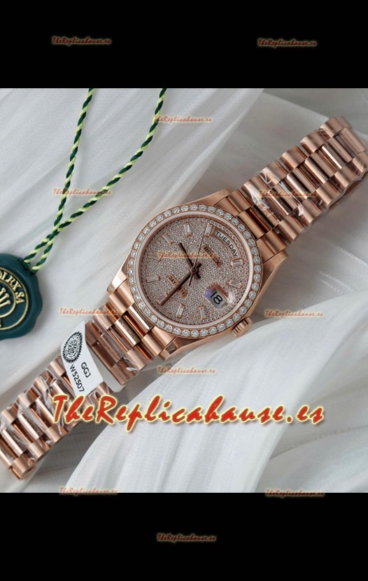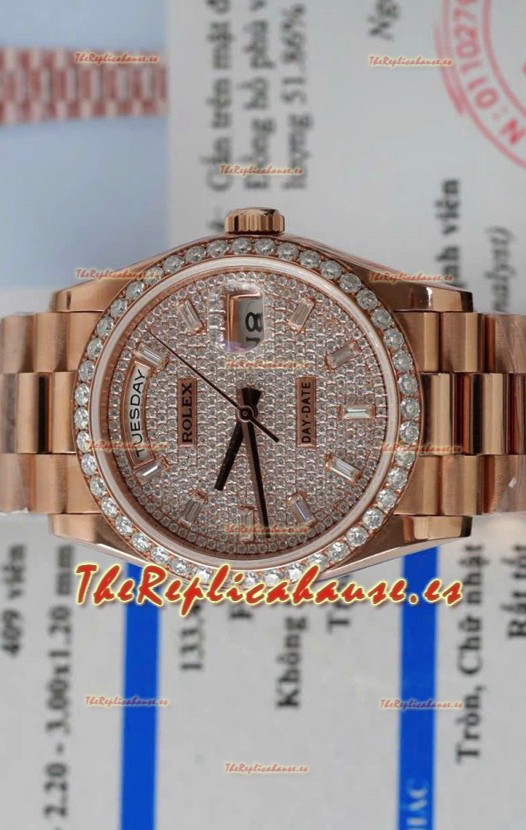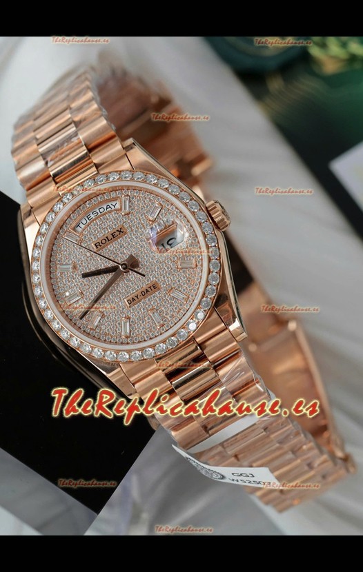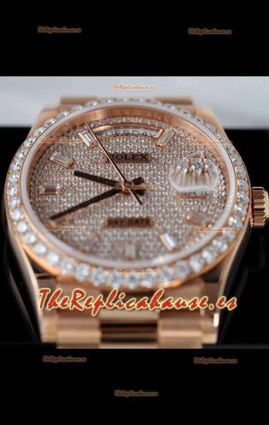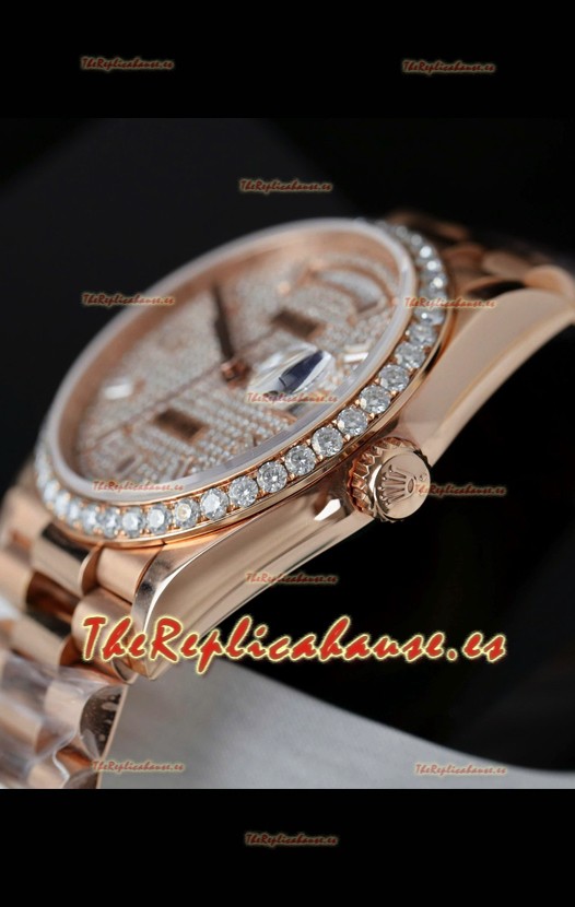 Rolex Day Date Super Clone Oro Rosado Pesonalizado Modificado Diamantes Pavimentados