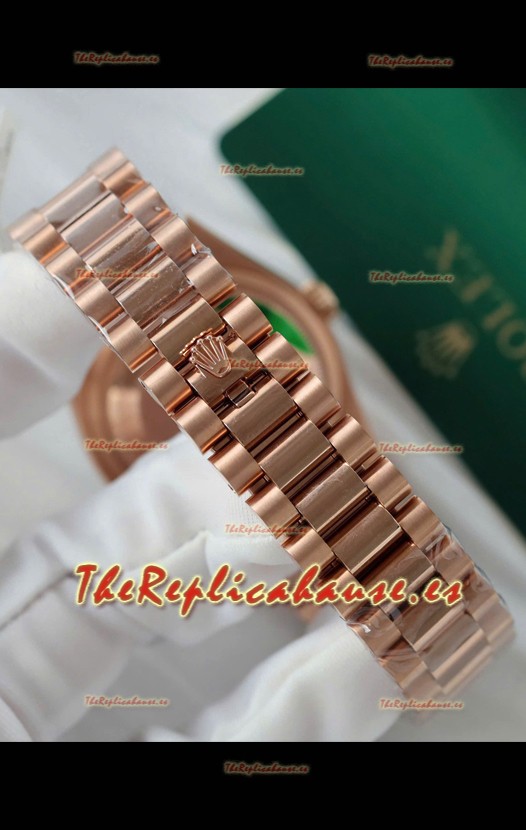 Correa Acero Inoxidable 904L chapada en Oro Rosado 18K con Nuevo Diseño de Correa President con Cierre Plegable completado con Marcas y Grabados Rolex