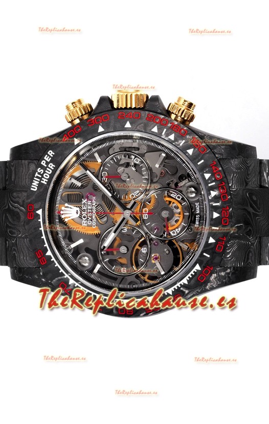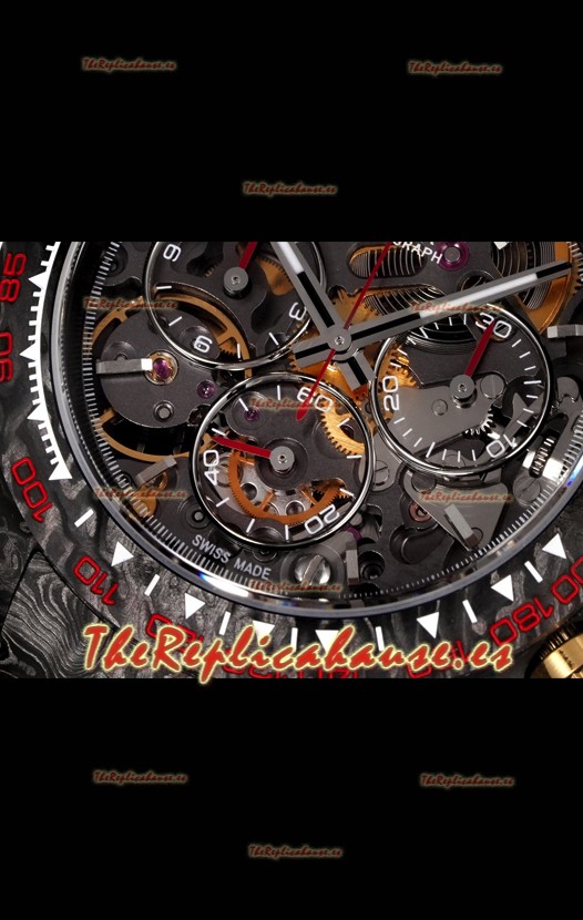 Rolex Daytona Blaken Carbono Negro Reloj Réplica Suizo Espejo 1:1 Dial Skeleton Movimiento Cal.4130