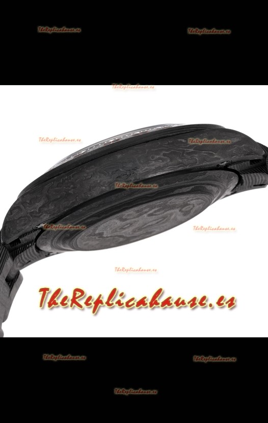 Caja de Carbono Negro Electrochapada con Marcadores y Grabados Rolex como el Auténtico.