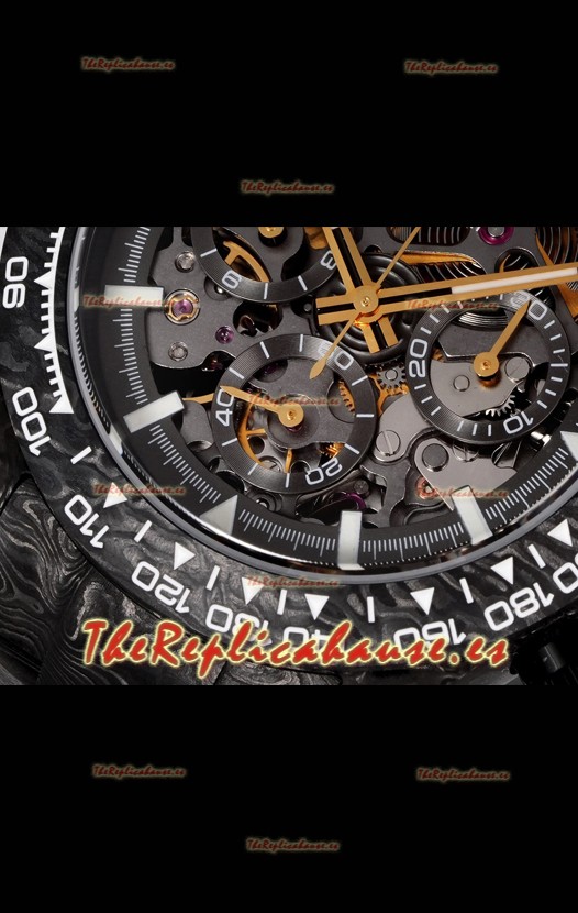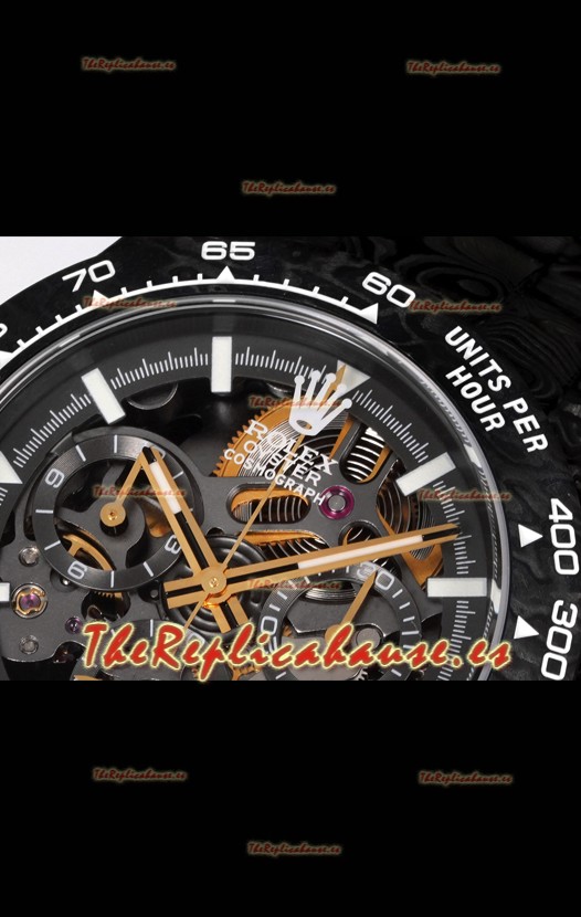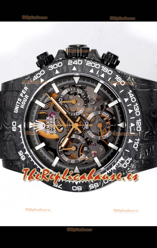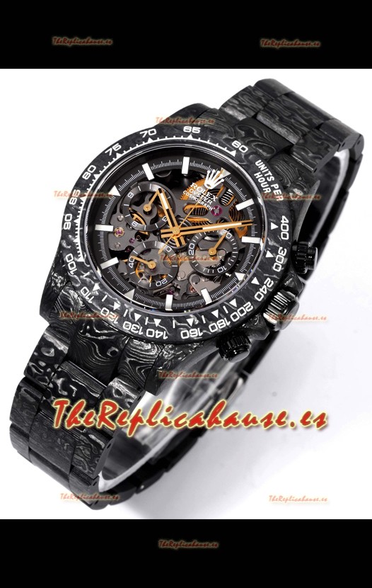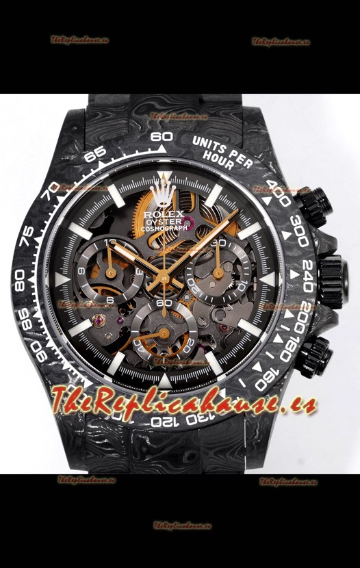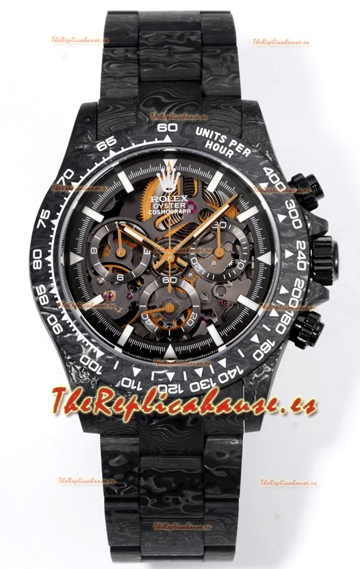 Rolex Daytona Blaken Carbono Negro Reloj Réplica Suizo Espejo 1:1 Dial Skeleton Movimiento Cal.4130