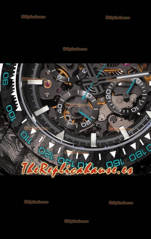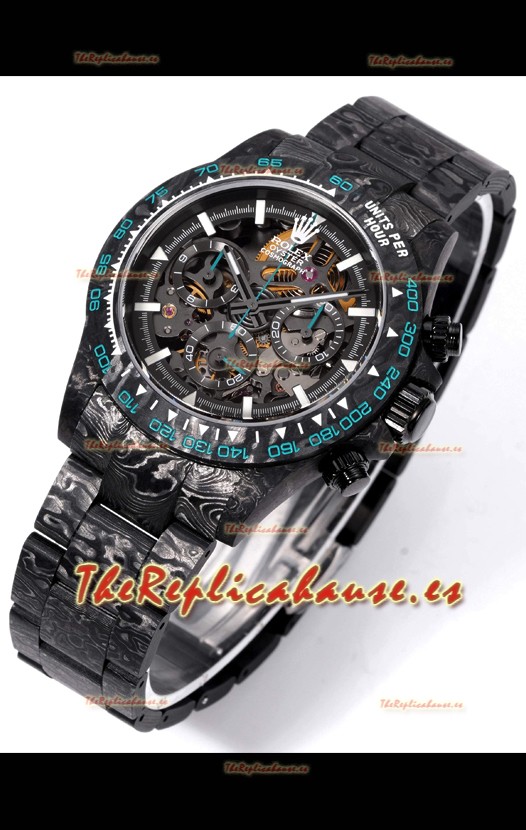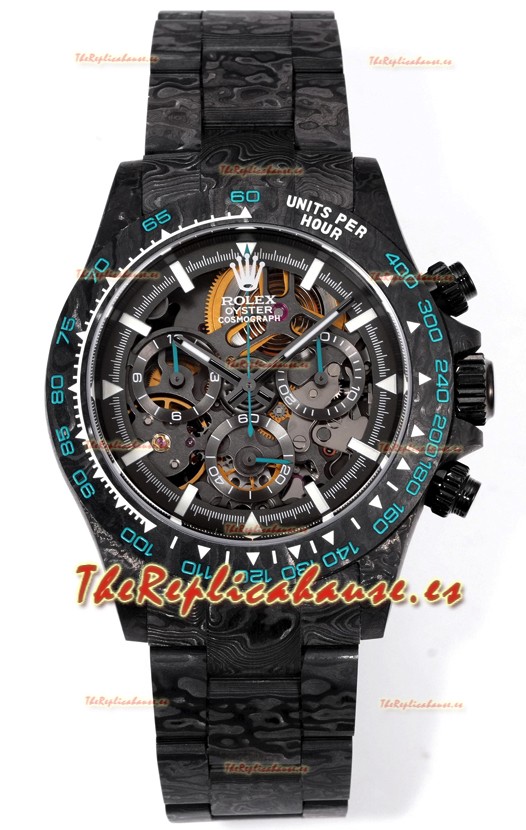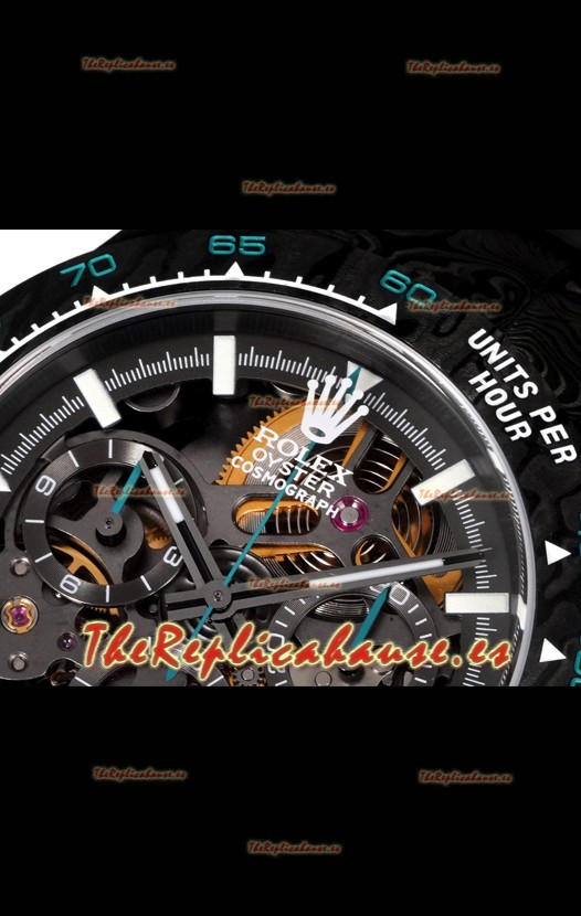 Rolex Daytona Blaken Carbono Negro Reloj Réplica Suizo Espejo 1:1 Dial Skeleton Movimiento Cal.4130