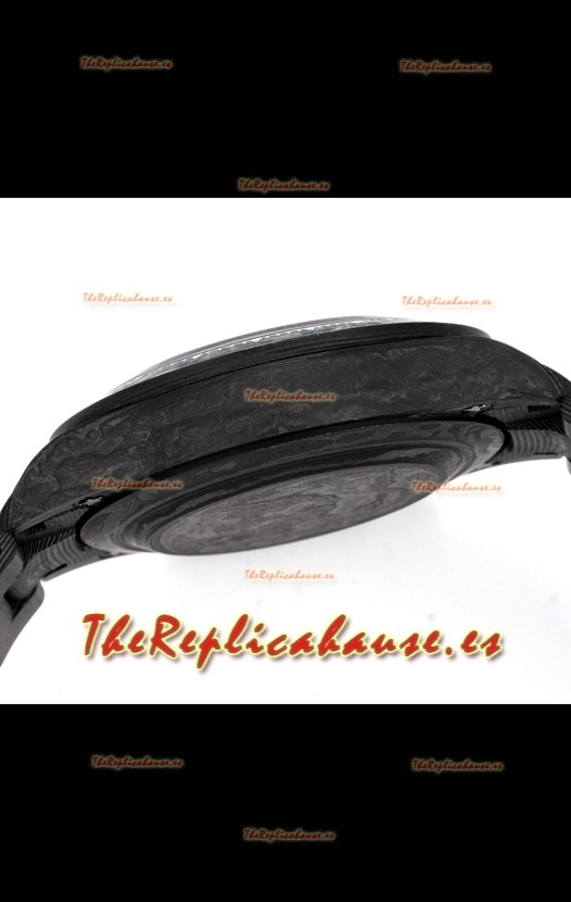 Caja de Carbono Negro Electrochapada con Marcadores y Grabados Rolex como el Auténtico.