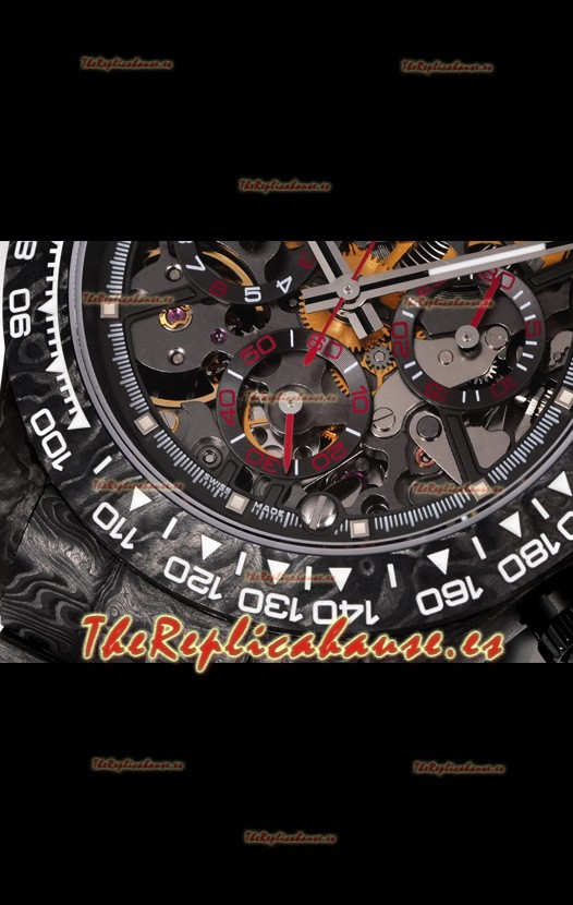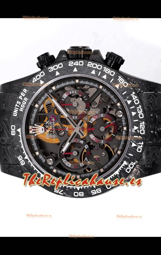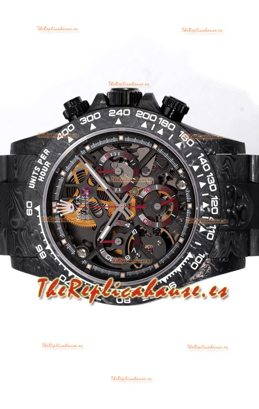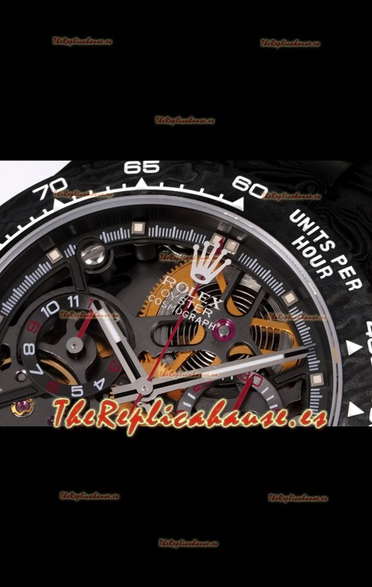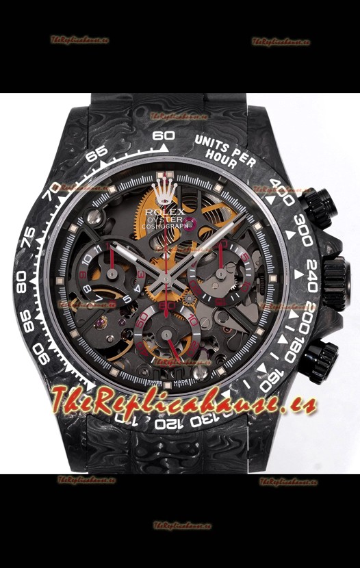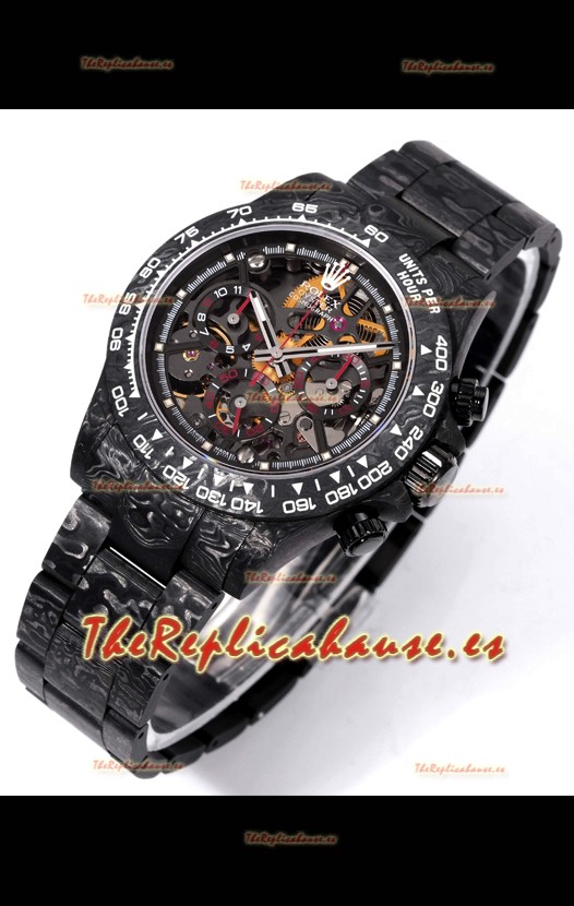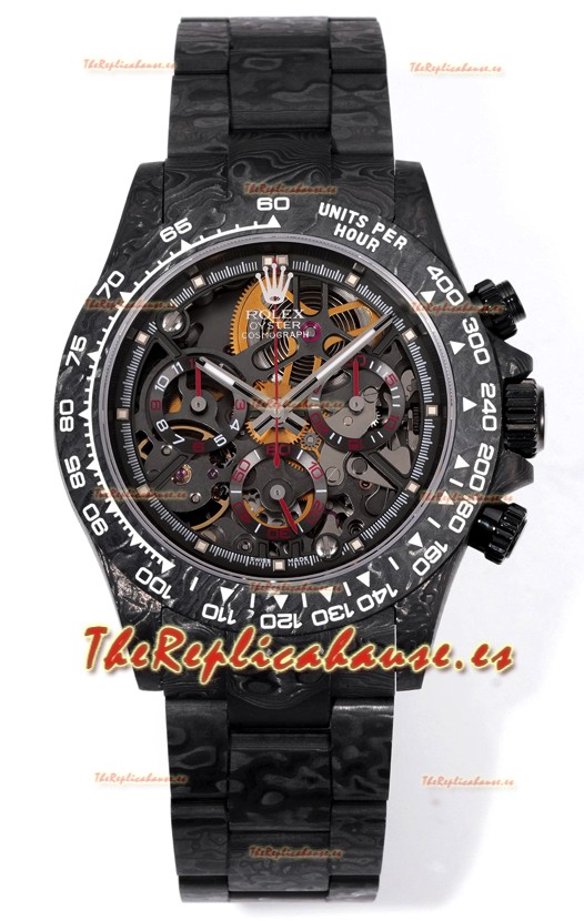 Rolex Daytona Blaken Carbono Negro Reloj Réplica Suizo Espejo 1:1 Dial Skeleton Movimiento Cal.4130