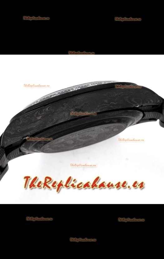 Caja de Carbono Negro Electrochapada con Marcadores y Grabados Rolex como el Auténtico.