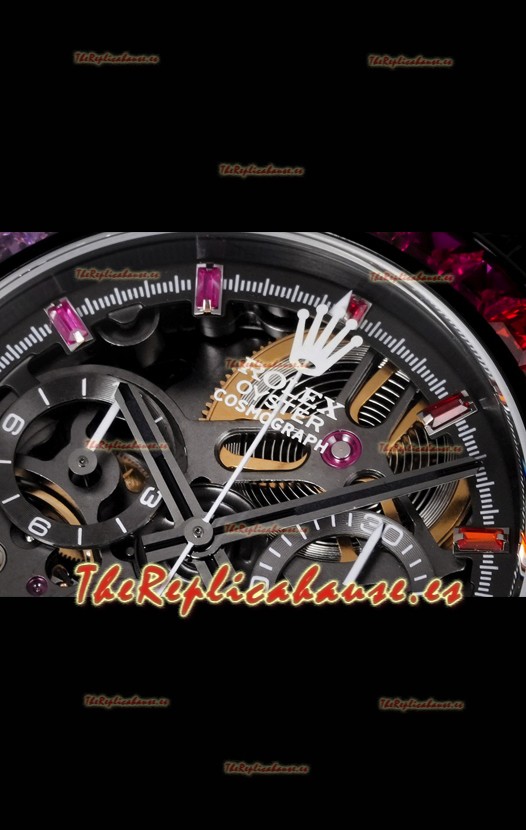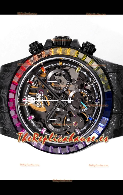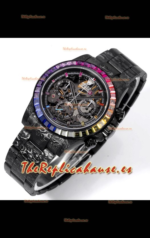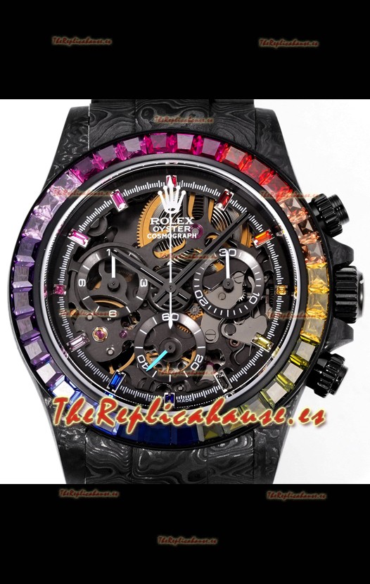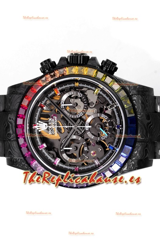 Rolex Daytona Blaken Carbono Negro Reloj Réplica Suizo Espejo 1:1 Dial Skeleton Movimiento Cal.4130
