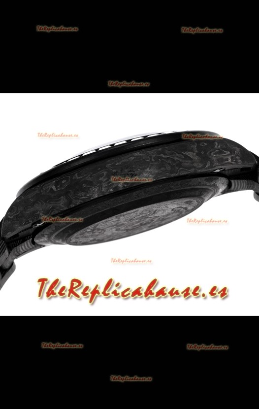 Caja de Carbono Negro Electrochapada con Marcadores y Grabados Rolex como el Auténtico.