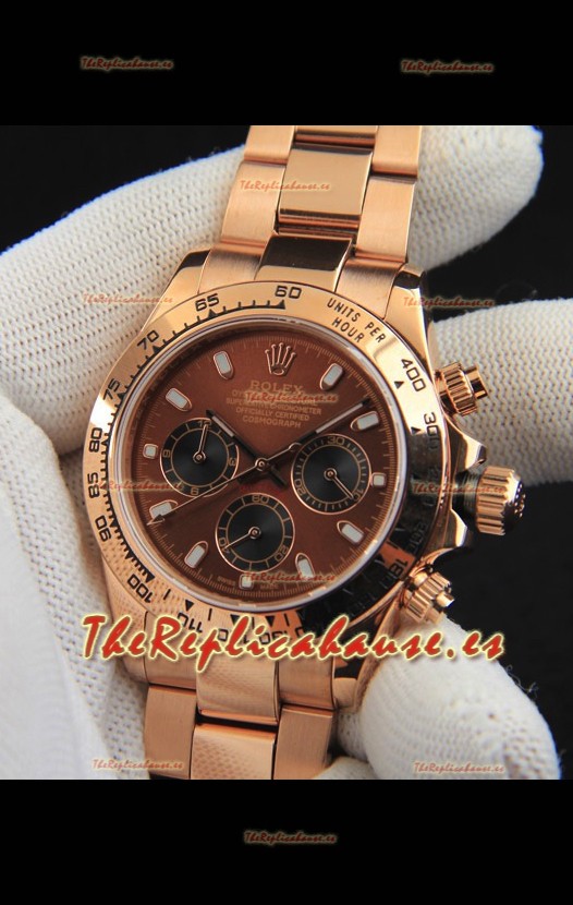 Rolex Daytona Movimiento Japonés Caja de Oro Reloj Réplica en Dial Marrón