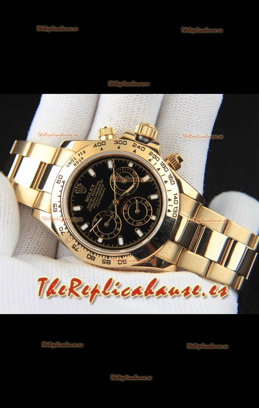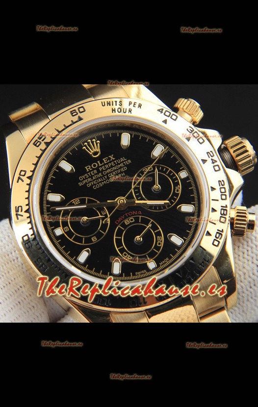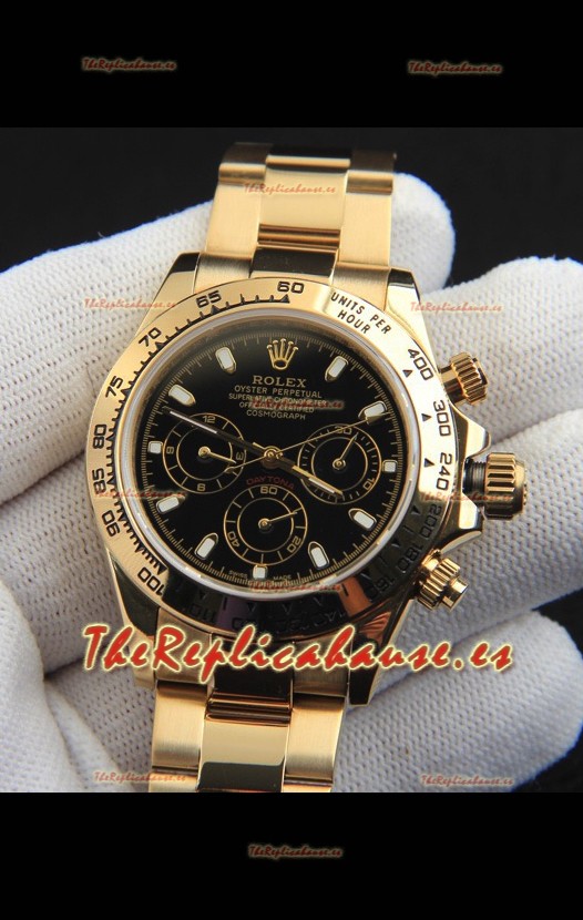 Rolex Daytona Movimiento Japonés Caja de Oro Reloj Réplica en Dial Negro