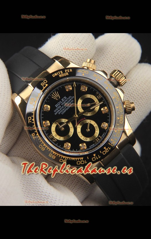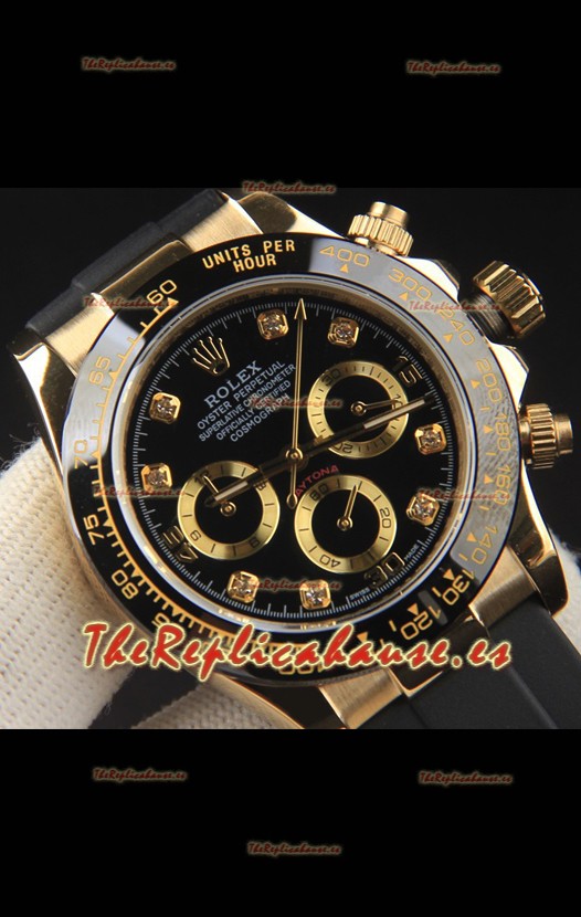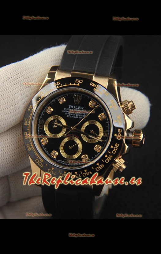Rolex Daytona Movimiento Japonés Caja de Oro Reloj Réplica en Dial Negro