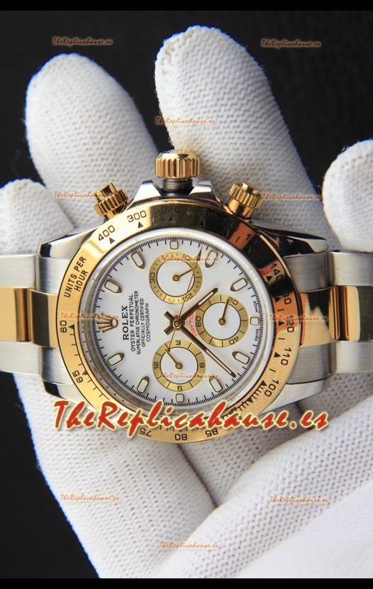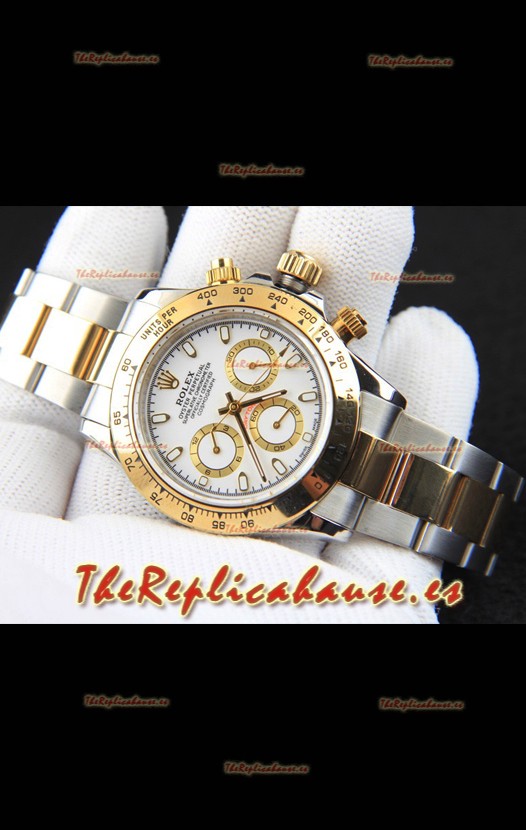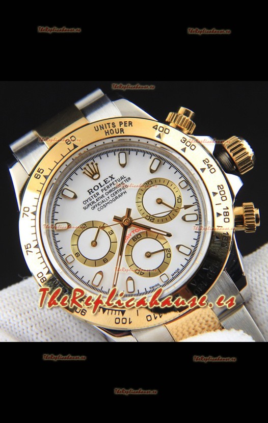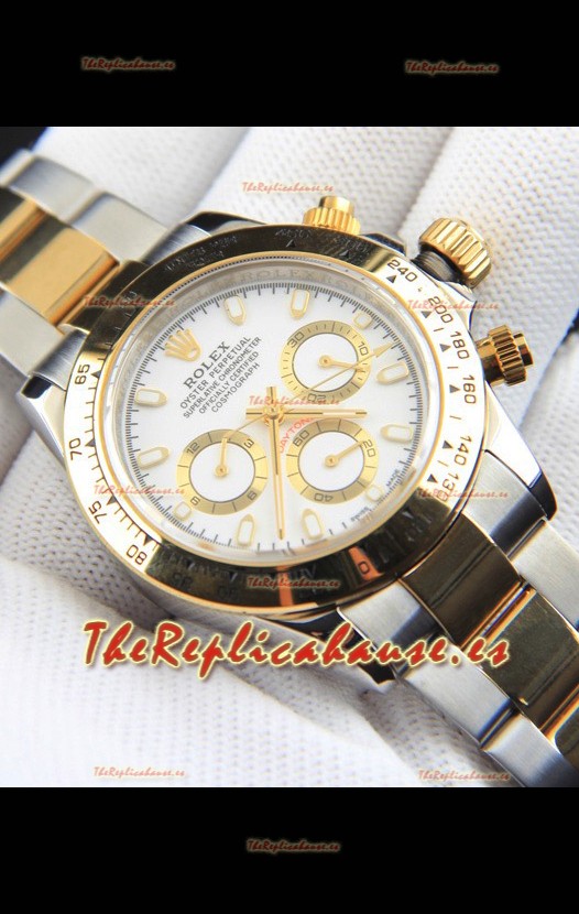 Rolex Daytona Movimiento Japonés Dos Tonos Caja de Oro Reloj en Dial Blanco