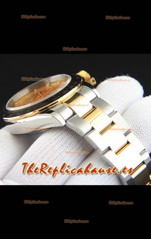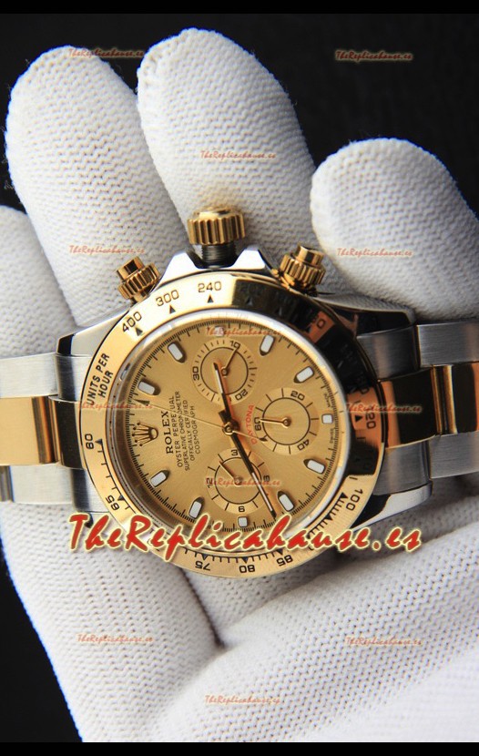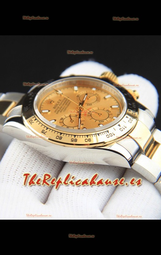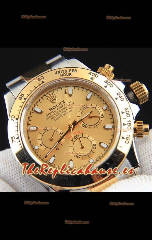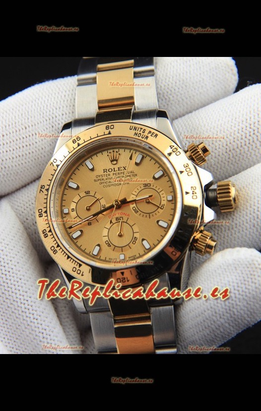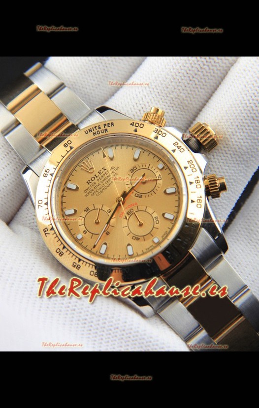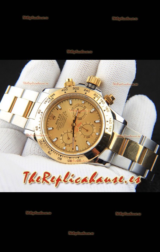 Rolex Daytona Movimiento Japonés Dos Tonos Caja de Oro Reloj en Dial Dorado