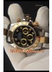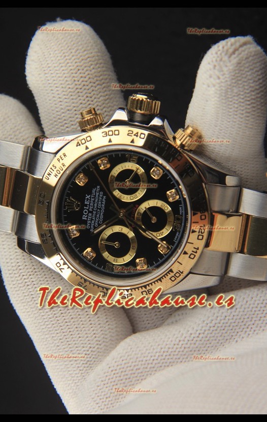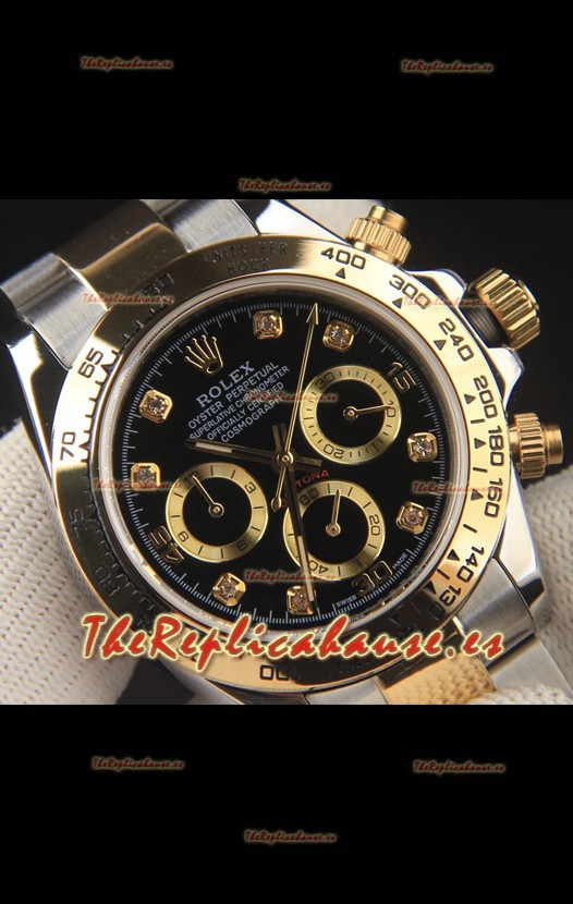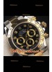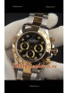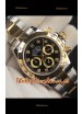 Rolex Daytona Movimiento Japonés Dos Tonos Caja de Oro Reloj en Dial Negro