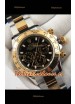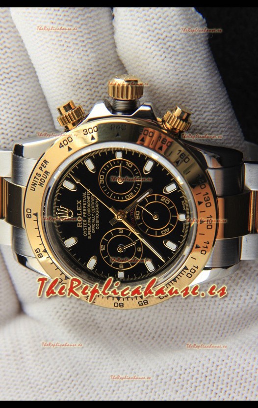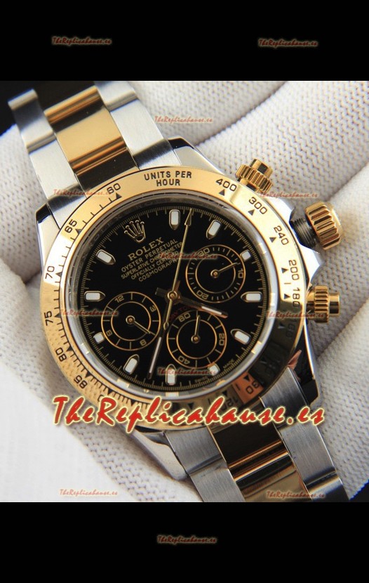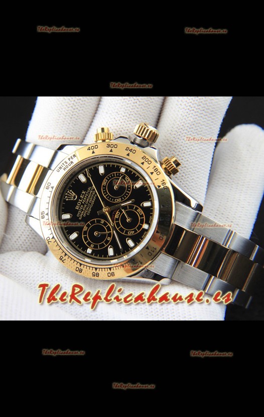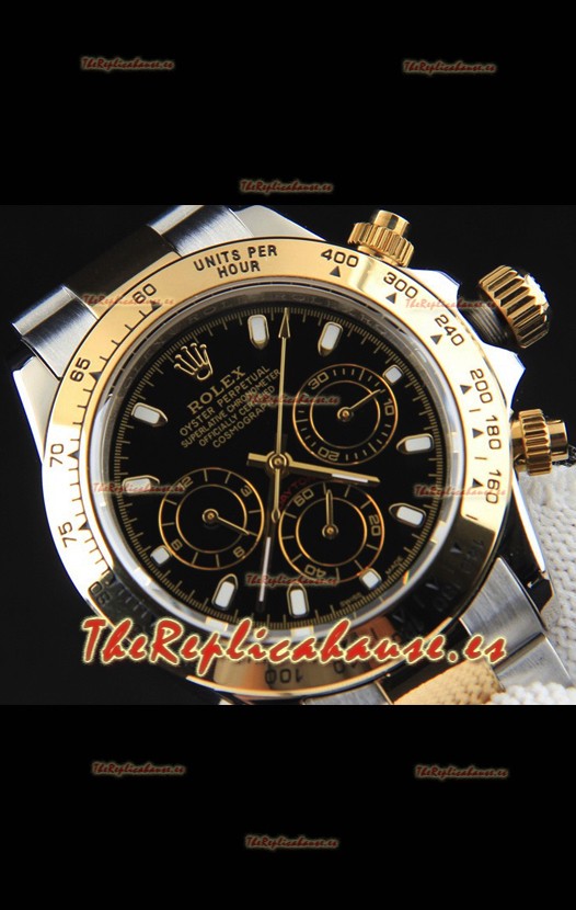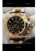 Rolex Daytona Movimiento Japonés Dos Tonos Caja de Oro Reloj en Dial Negro