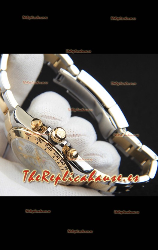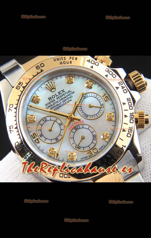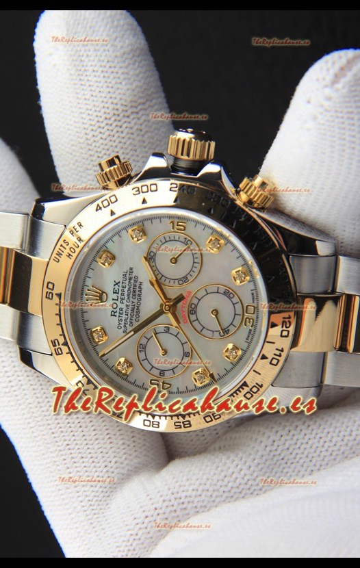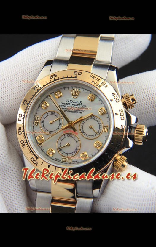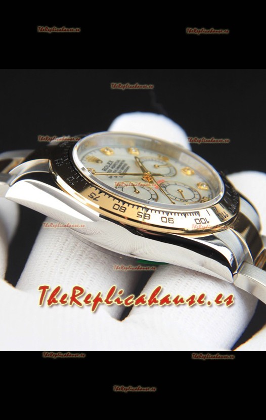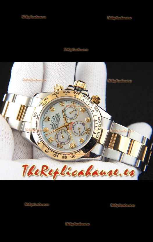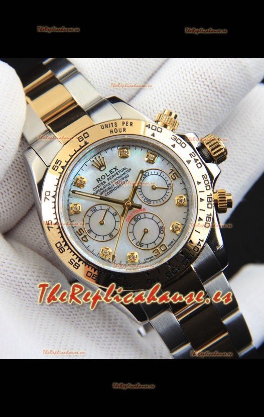 Rolex Daytona Movimiento Japonés Dos Tonos Caja de Oro Reloj en Dial Perla