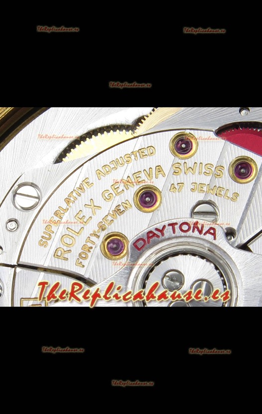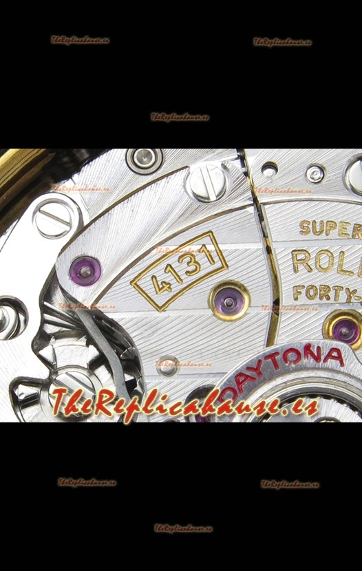 Genuino Movimiento Cal.4131 construido desde cero sin modificaciones, Platos y Rotores chapados en Platino como en el Original. El mismo Movimiento que encuentras en los Relojes Rolex Daytona
