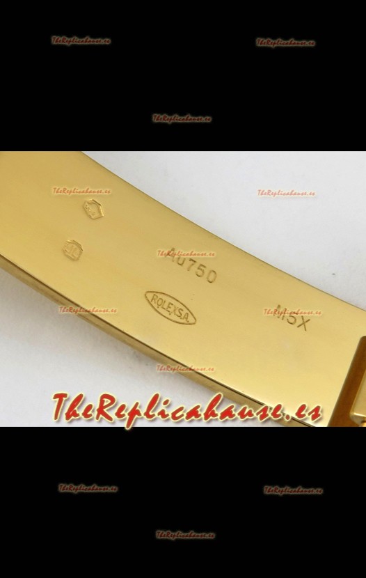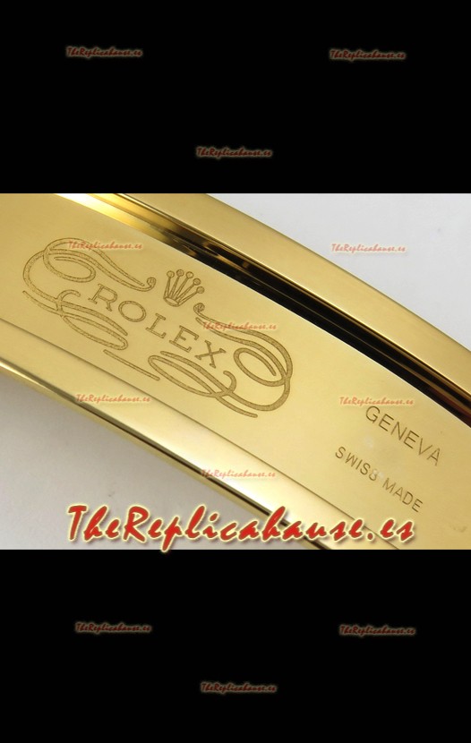Caja Acero Inoxidable Solido 904L chapada en Oro Amarillo con Marcadores y Grabados Rolex como los Auténticos.